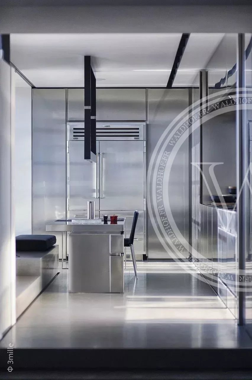 - A vast 300m2 living room with a 600 kg stainless steel dining table adds an exceptional touch.