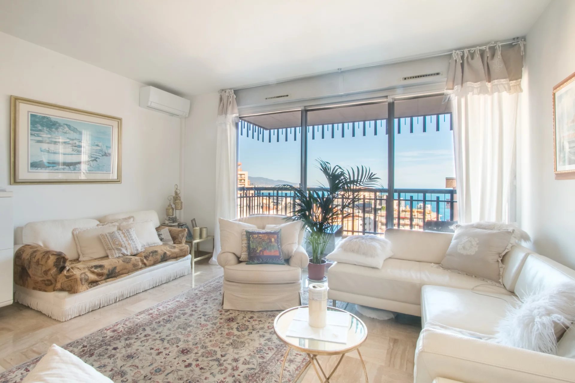 Beautiful 3-room apartment composed of an entrance, a living room opening onto a terrace offering a beautiful sea and casino view, a fitted kitchen with a loggia, two bedrooms, a bathroom and a separate toilet.