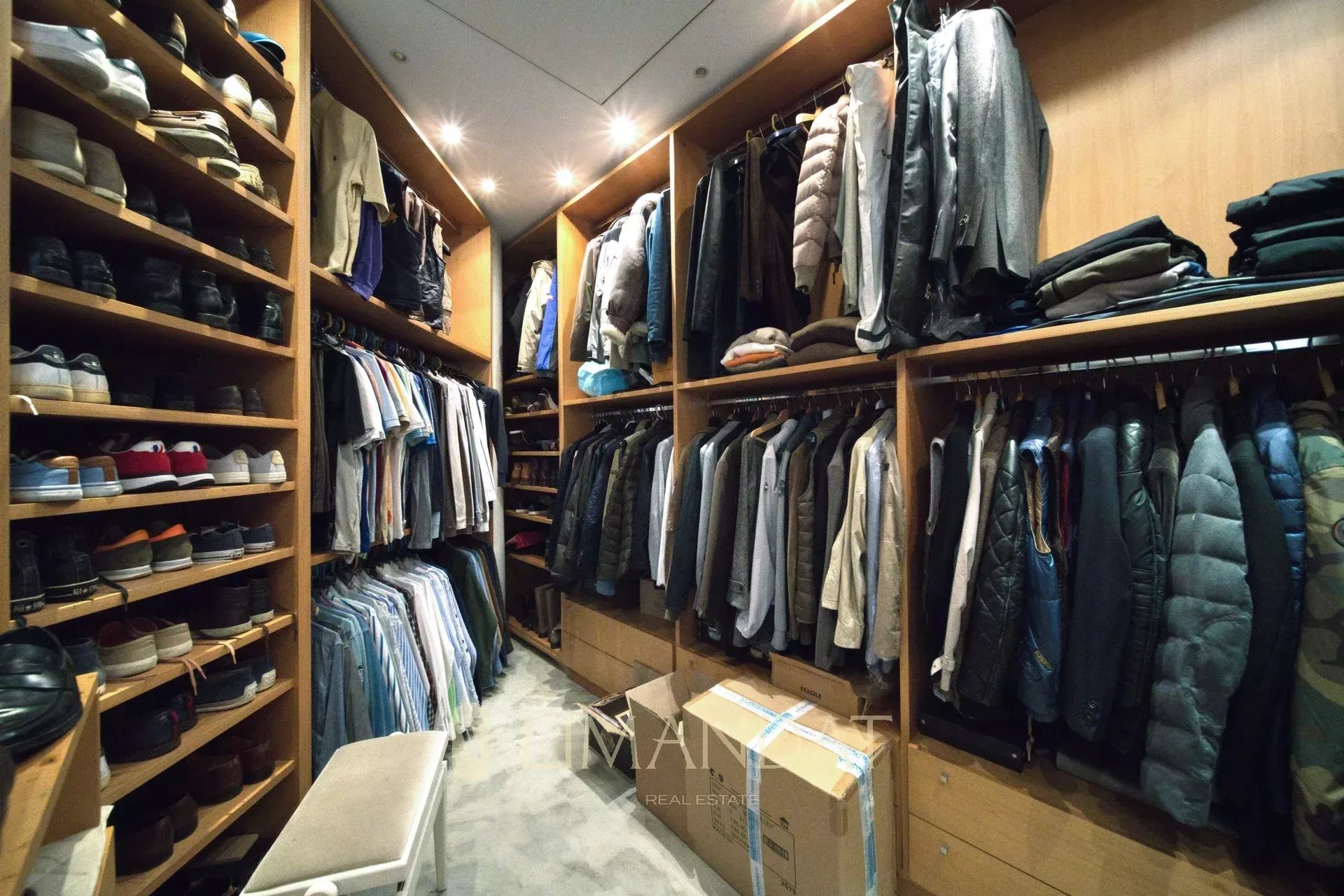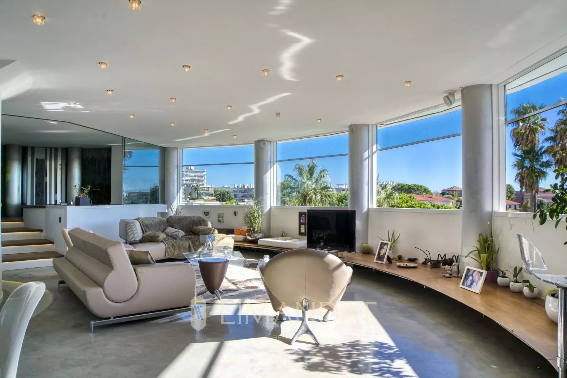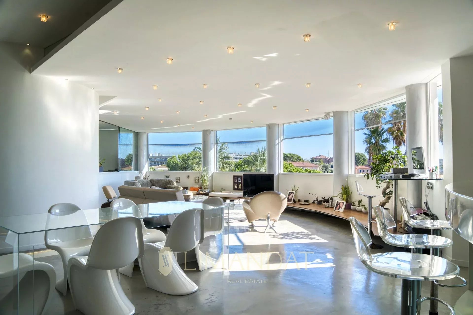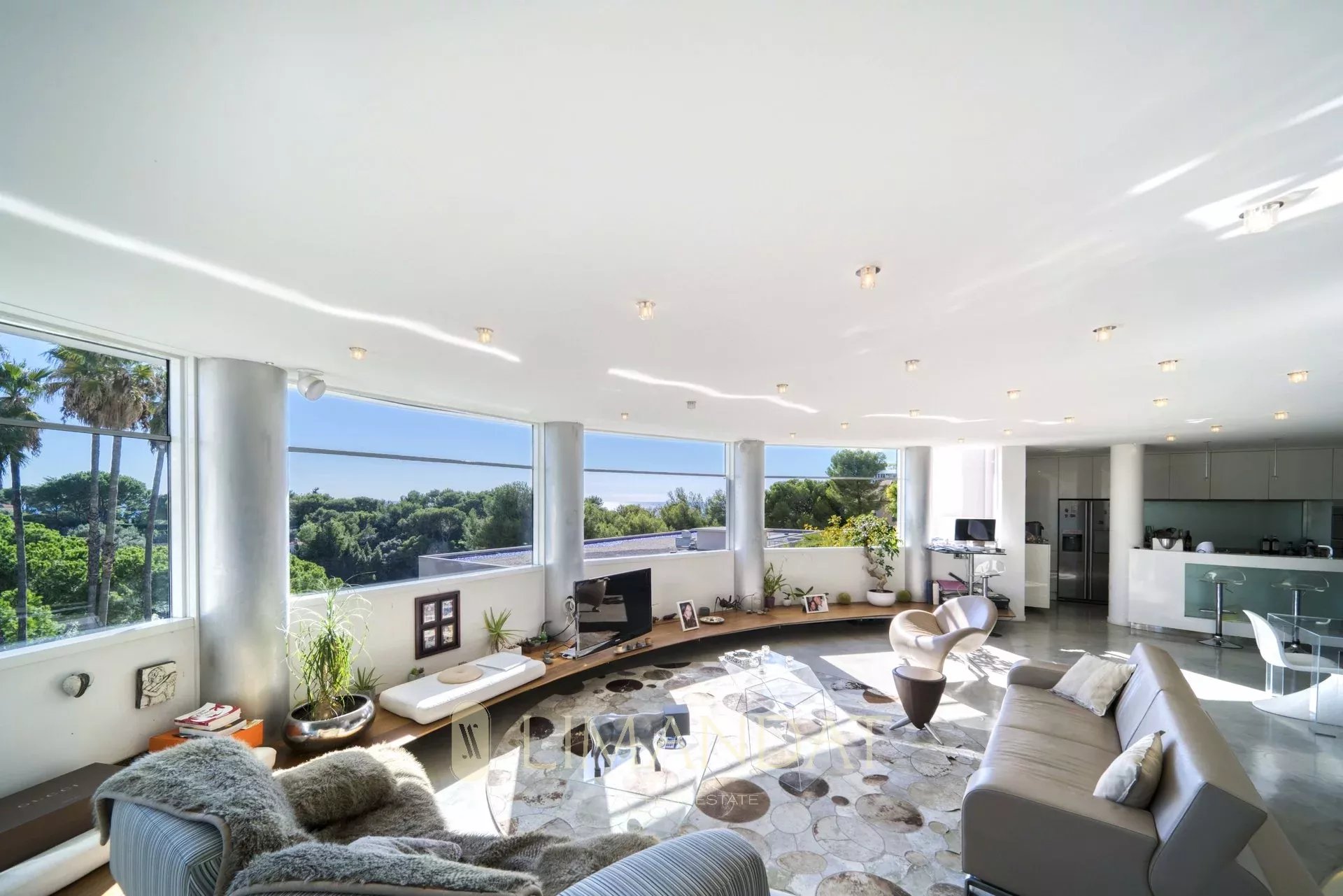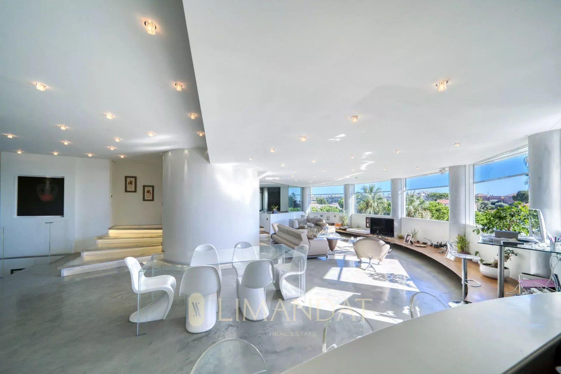 The apartment with generous volumes, in a contemporary style, consists of a huge living room of 120 m2 with fully equipped open kitchen, and large bay windows with a view of the residence's park and the sea, spa, master bedroom with bathroom. bathroom and dressing room, guest toilet.