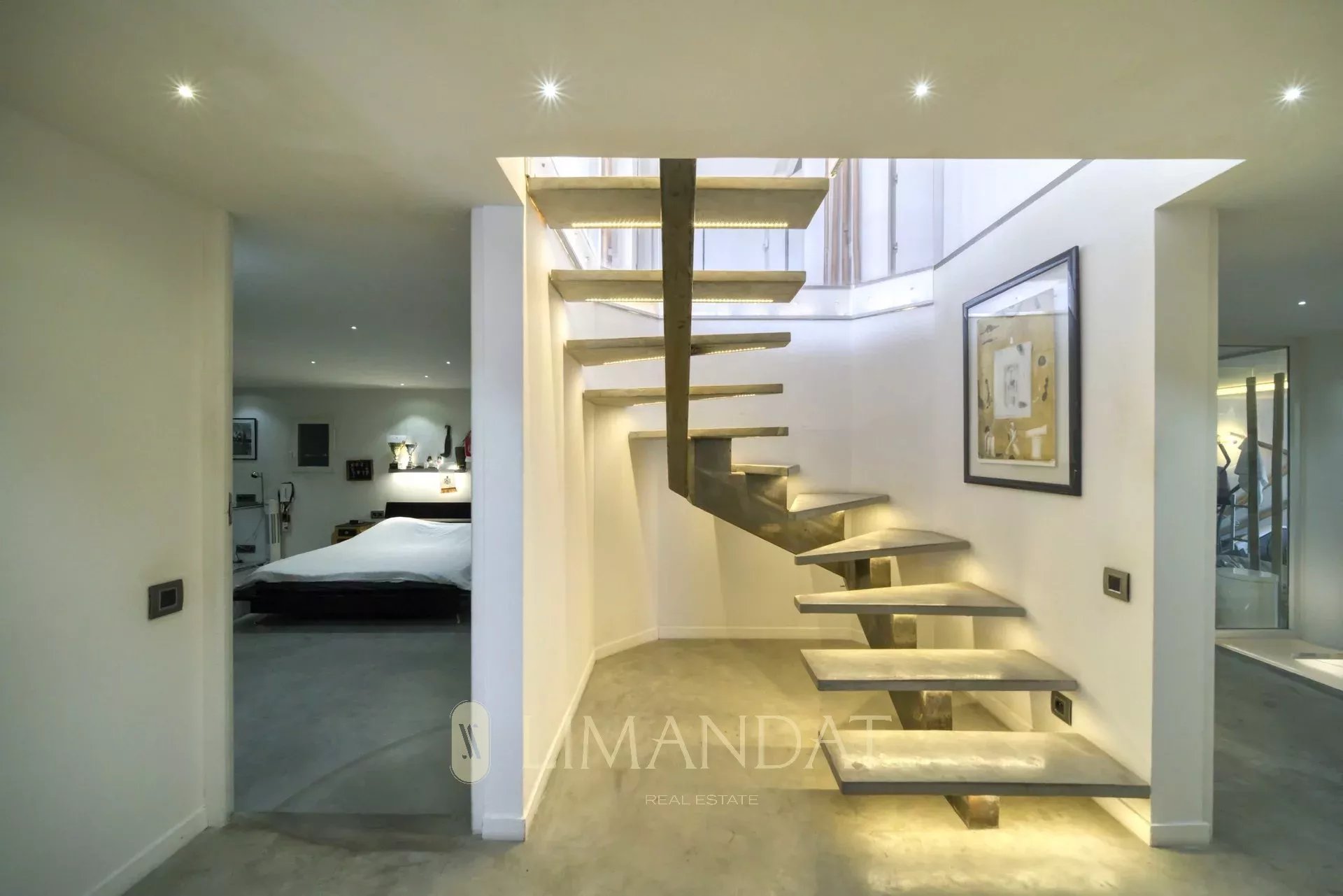 Roquebrune-Cap-Martin, near town hall and access to Monaco, facing south, in a secure luxury residence, with swimming pool, garden, tennis court, gym and caretaker, quiet, magnificent 6-room loft of 330 m2 on 2 levels, renovated with taste in 2009, cellar and private covered parking.