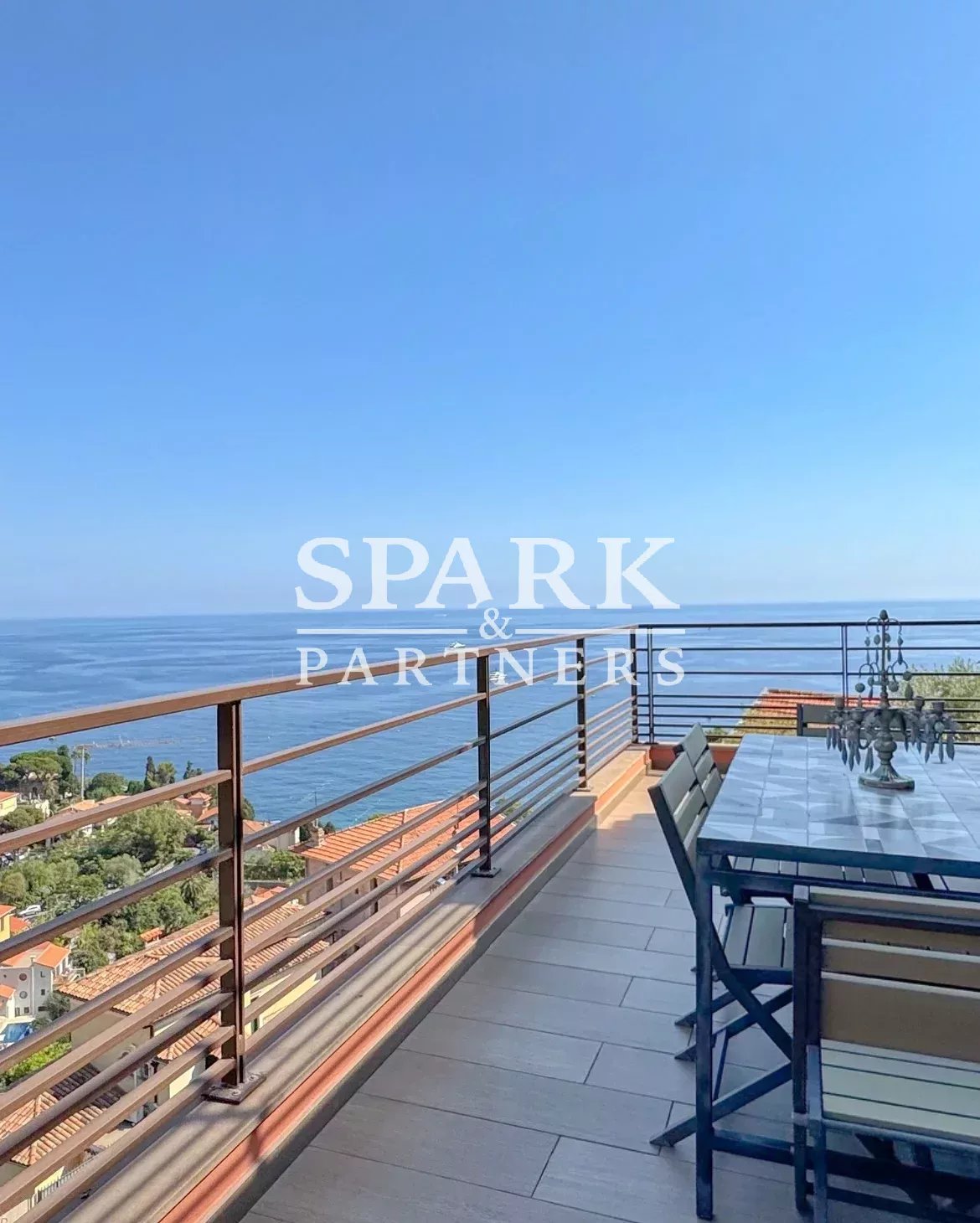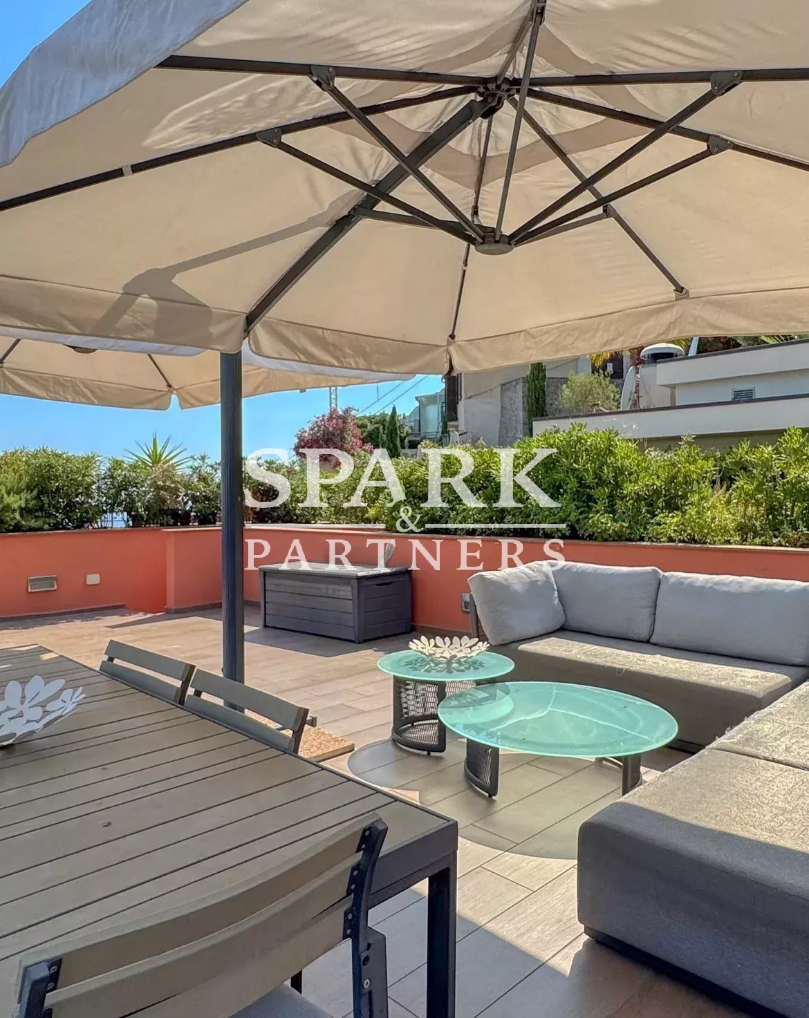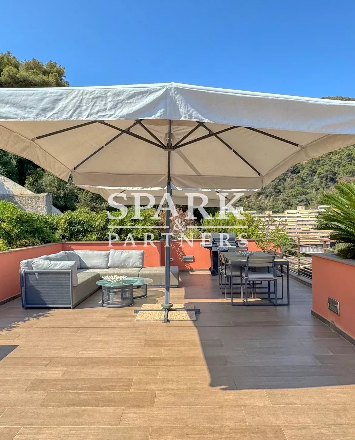 In Roquebrune-Cap-Martin, in a luxury residence with swimming pool and solarium, discover this magnificent 3-room duplex with panoramic views of the sea and Cap Martin.
