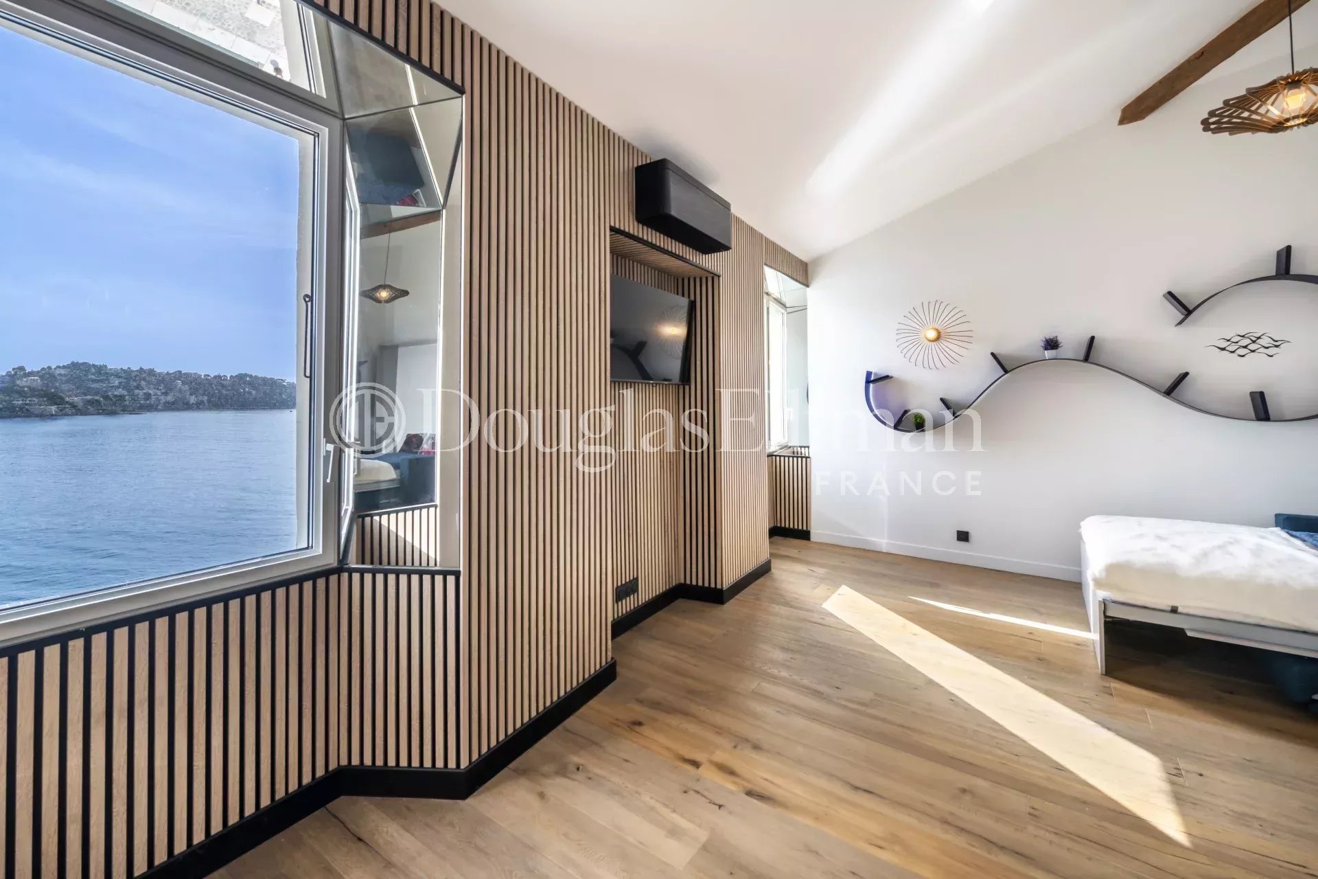 It has all the cachet of these old buildings, with exposed beams and cathedral ceilings, with modern renovation and comfort, double glazing, reversible air conditioning, and an exceptional view over the harbor and Saint-Jean-Cap-Ferrat.