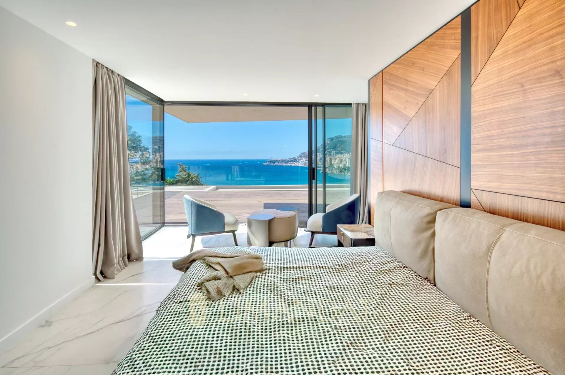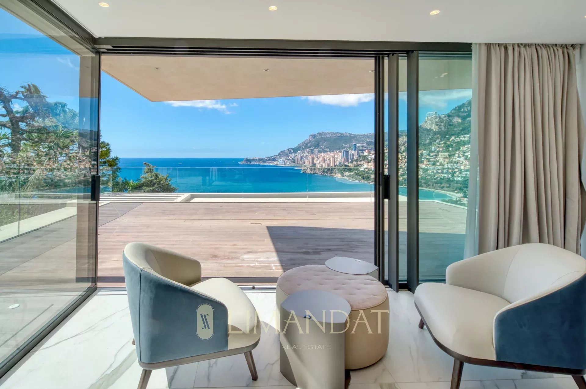 Ideally located facing the Bay of Monaco, in Roquebrune-Cap-Martin, this brand-new and fully furnished contemporary villa of 348 m² enjoys a full south-west exposure and a truly unique panorama.