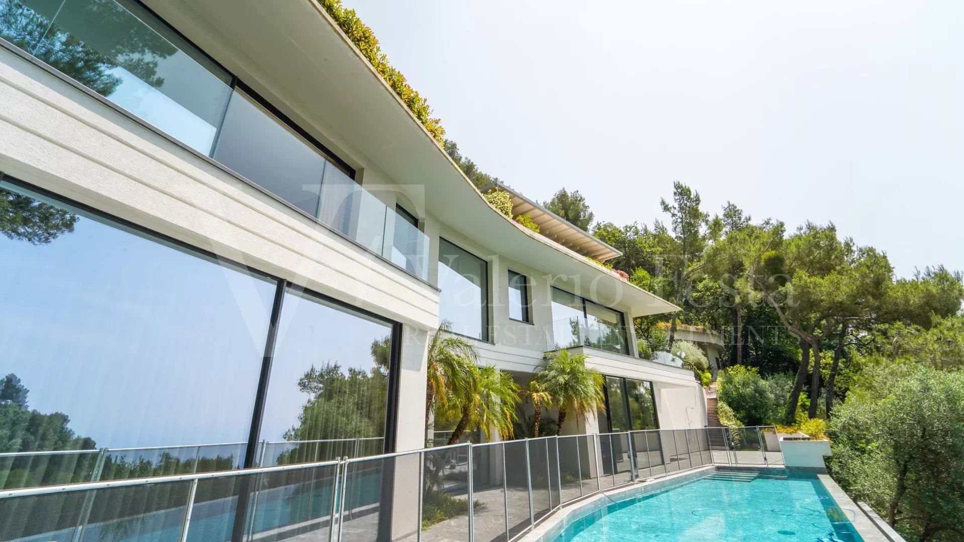 Perched on a peaceful hillside above Roquebrune-Cap-Martin and just ten minutes from Monaco, this contemporary villa offers a rare combination of refined architectural design, cutting-edge technology and spectacular sunset views over the sea. Distributed across three levels and served by an internal lift, the property spans 315 sqm of interior space, opening onto wide panoramic terraces and beautifully landscaped grounds. West-facing and bathed in natural light, the villa is nestled at the end of a private, no-through lane, surrounded by lush greenery and complete tranquillity. The garden level features a grand double-height entrance hall, a guest cloakroom, a bright formal living area, a fully equipped independent kitchen with direct access to the dining terrace, and an adjacent fitness space. A guest bedroom with walk-in wardrobe and en-suite bathroom enjoys private garden access, while the laundry and technical areas are discreetly positioned at the rear. This level opens onto a 121 sqm sea-view terrace and the spectacular infinity-edge pool. On the intermediate floor, the principal suite boasts its own private loggia, a generous walk-in dressing room, a twin-basin bathroom layout, a separate shower room and WC. A private study with panoramic sea views offers the ideal setting for remote working. Two additional en-suite bedrooms with bespoke wardrobes complete the level, which also includes a 44 sqm terrace. The upper floor provides secure covered parking for four vehicles, with direct lift access to the living areas—ensuring maximum convenience in all seasons. Set on a 2,371 sqm plot, the villa is equipped with full home automation for lighting, climate control, blinds and security—easily managed via smartphone or tablet. Premium features include underfloor heating, zoned reversible air conditioning, high-performance double glazing, fibre-optic internet, an armoured entrance door, electric gate, video surveillance and a comprehensive alarm system. New-generation villas offering this level of space, design and technological integration are increasingly rare so close to Monaco. The west-facing orientation guarantees unforgettable sunsets, while the property’s smart systems reduce running costs and enhance rental potential. Whether as a primary residence, a refined holiday retreat or a high-yield investment, this villa represents a strategic acquisition on the most exclusive stretch of the French Riviera.