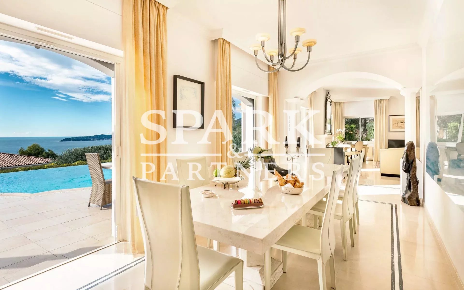 Located in "Cap d'Ail, just a stone's throw from Monaco, this luxurious property boasts a large heated infinity pool with breathtaking views of the Mediterranean Sea and Cap Ferrat.