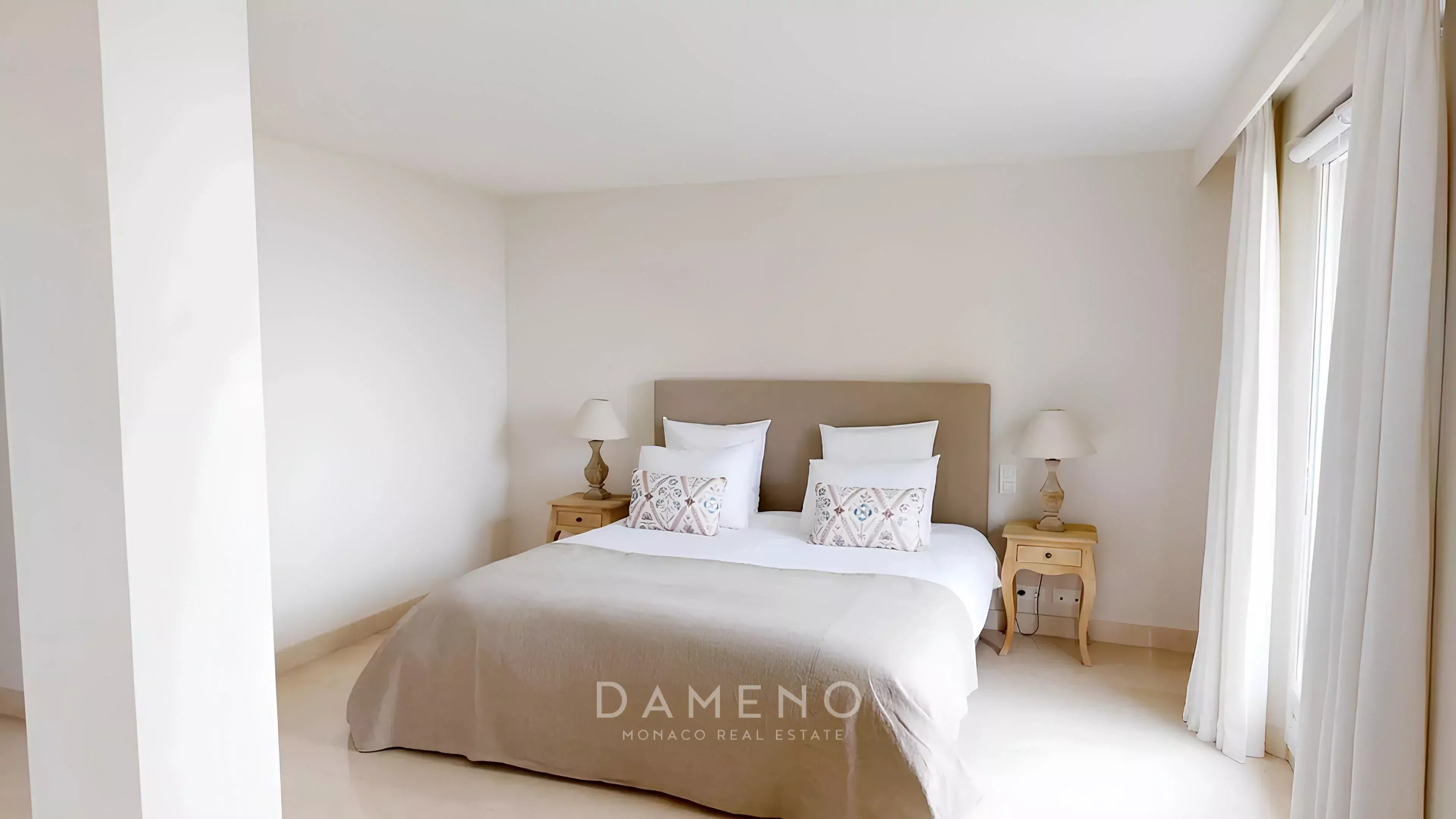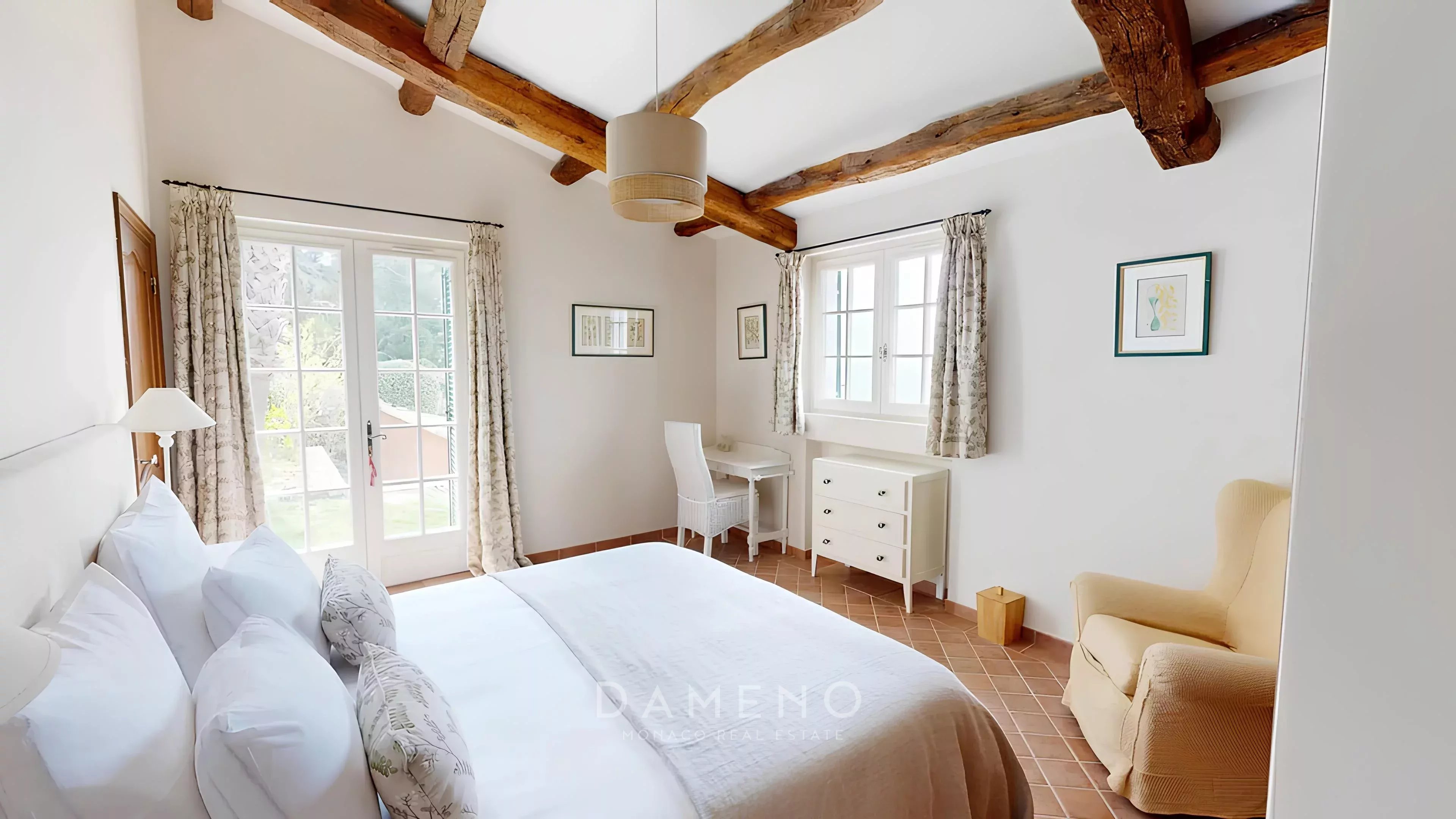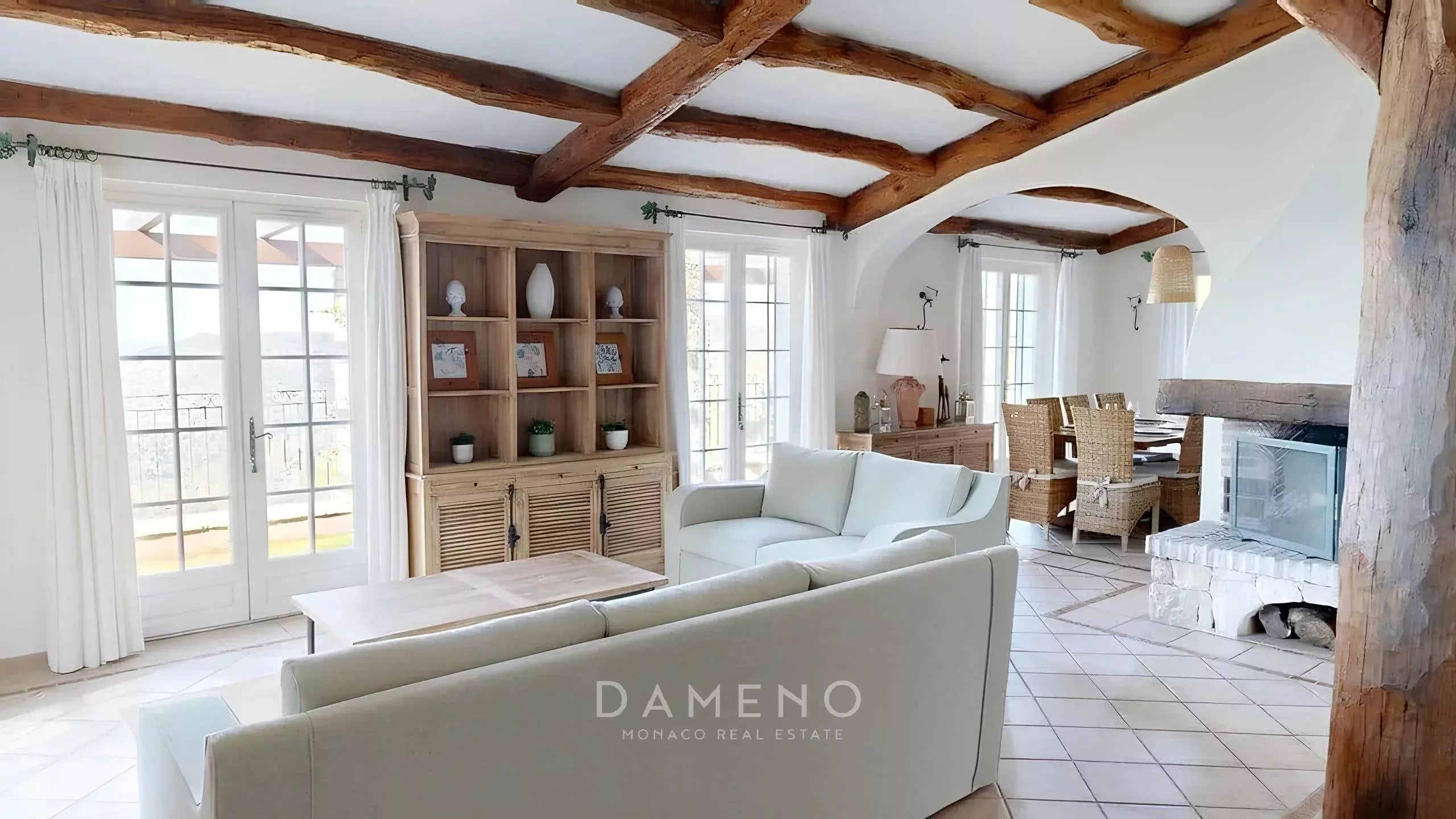 Located in the charming village of Èze, perched on a hilltop with stunning panoramic sea views, this refined Provençal-style villa features 5 bedrooms, 4 bathrooms, a fully equipped kitchen, spacious and bright living areas, an office, and a home cinema.