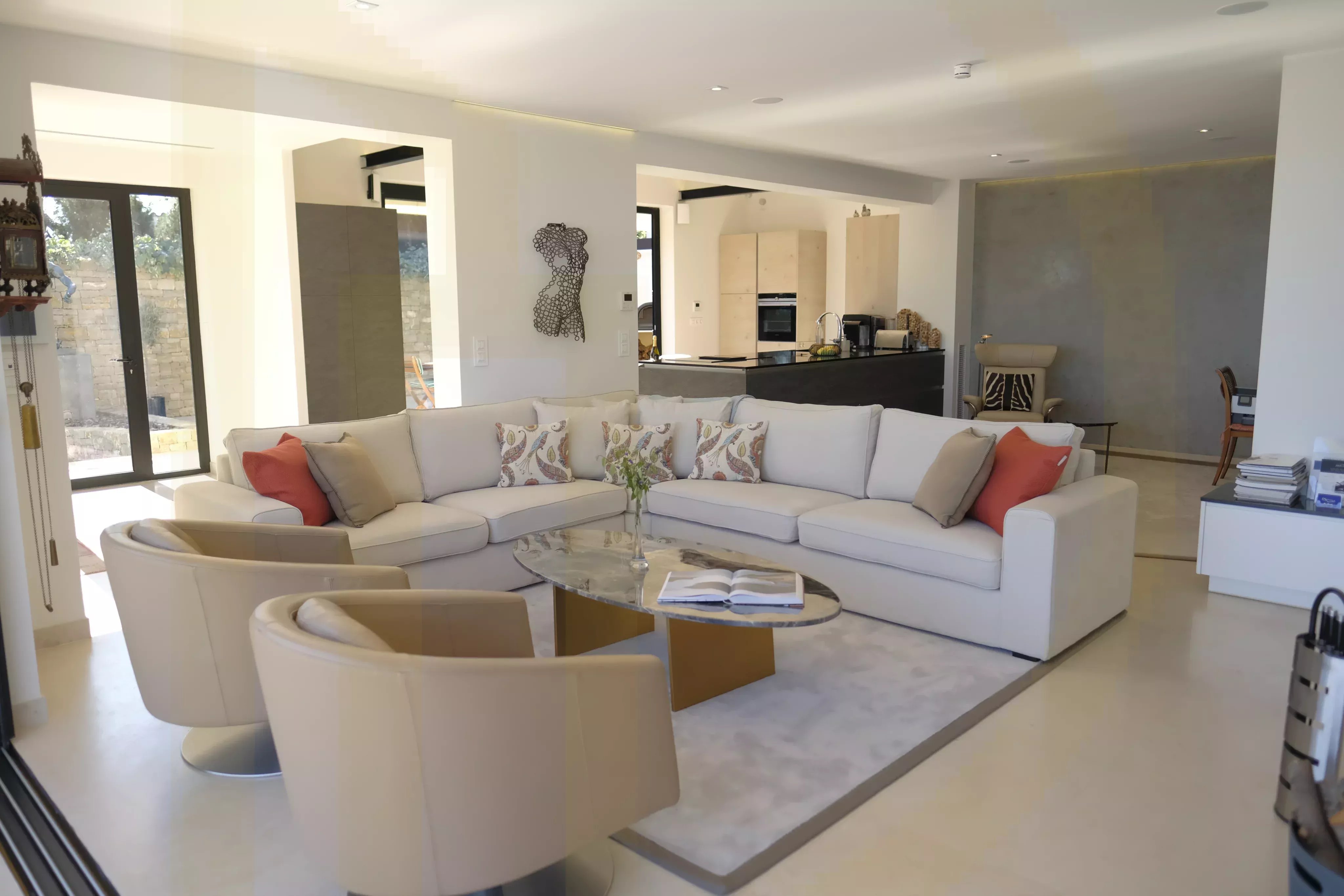 Outdoor enthusiasts will delight in the beautifully designed terrace, complete with a barbecue area perfect for al fresco dining. Enjoy direct access to the swimming pool, ideal for leisure and relaxation. An intercom and videophone enhance security and convenience, while the sleek, modern kitchen comes fully equipped with a coffeemaker, freezer, and oven, catering to your culinary needs with style.