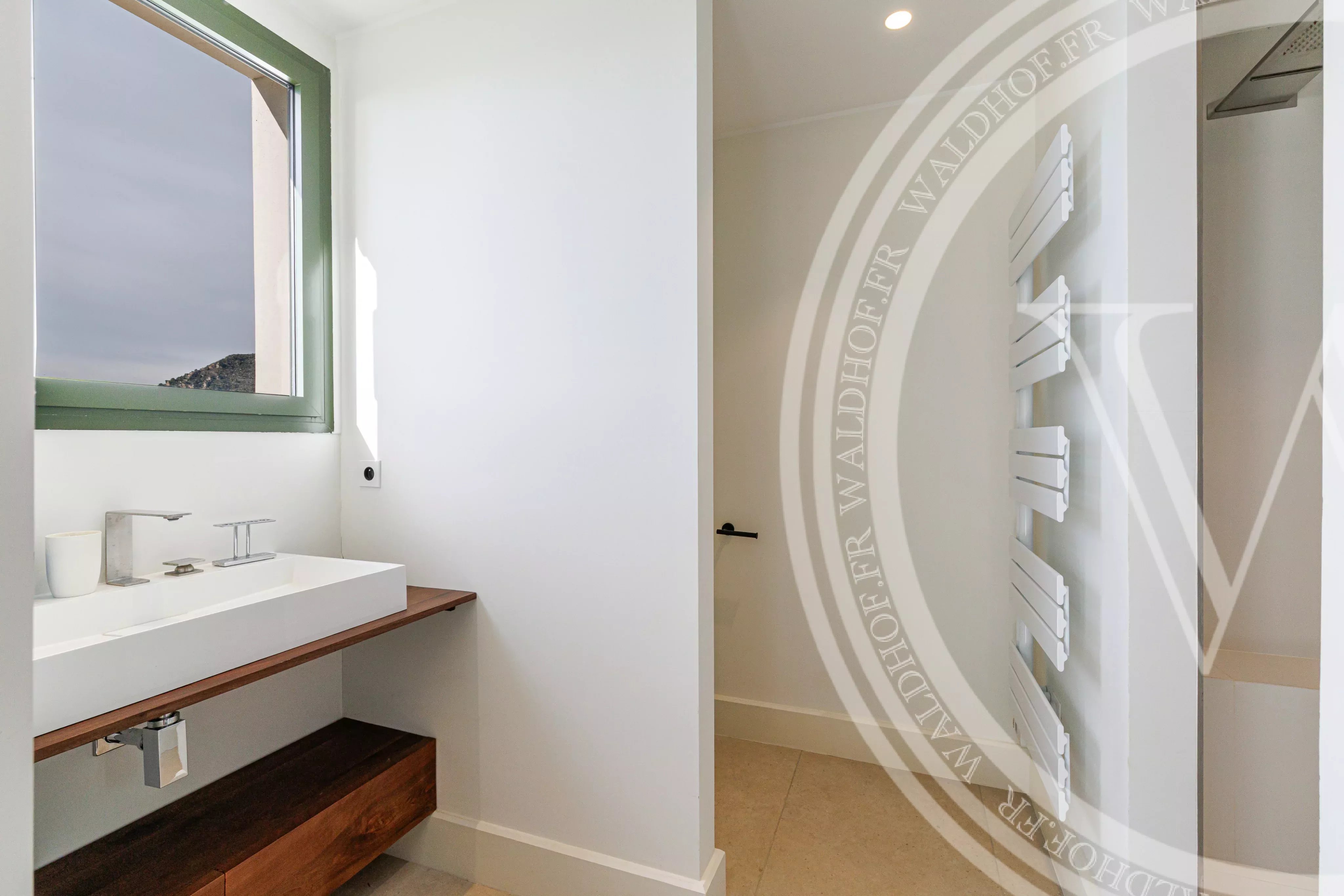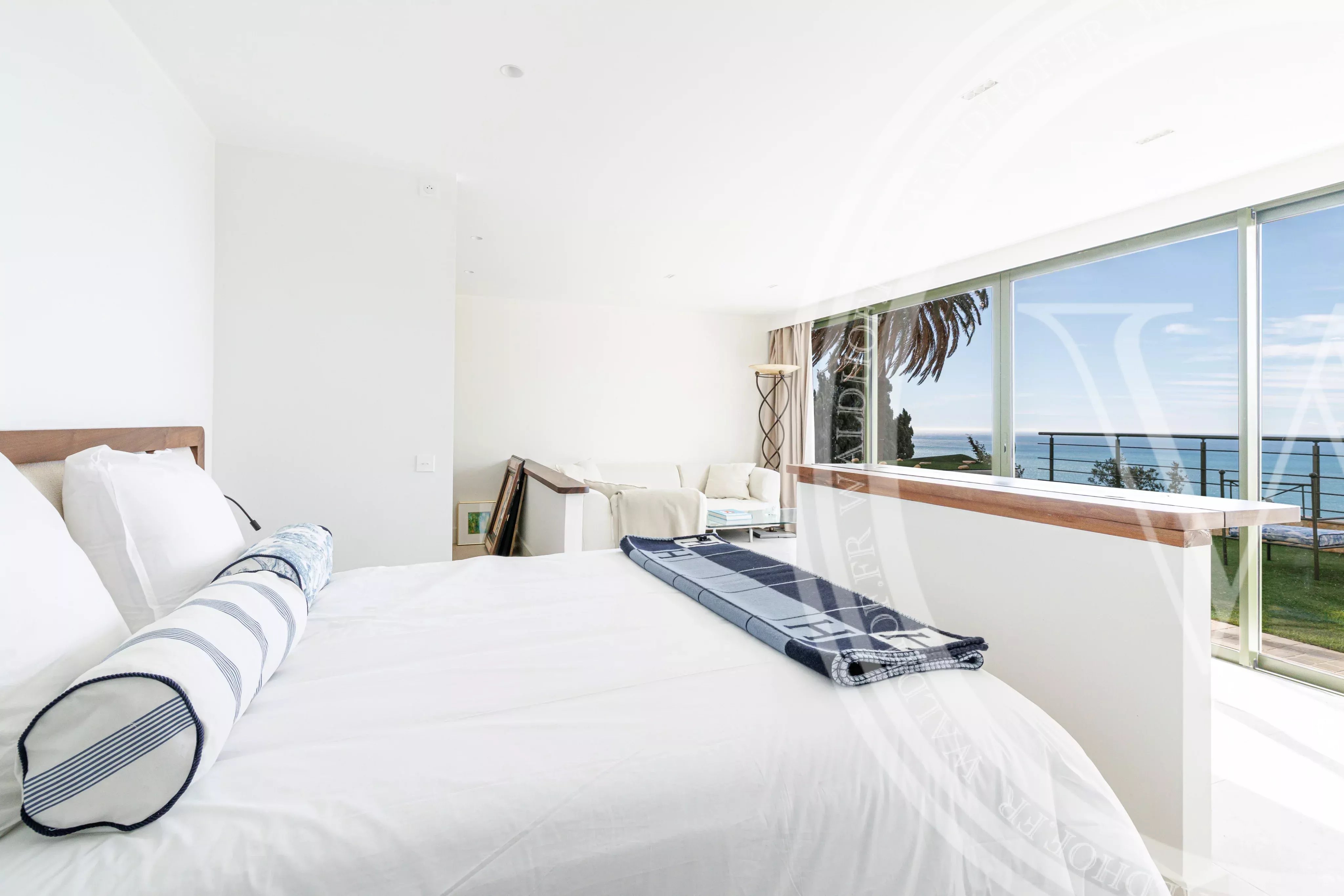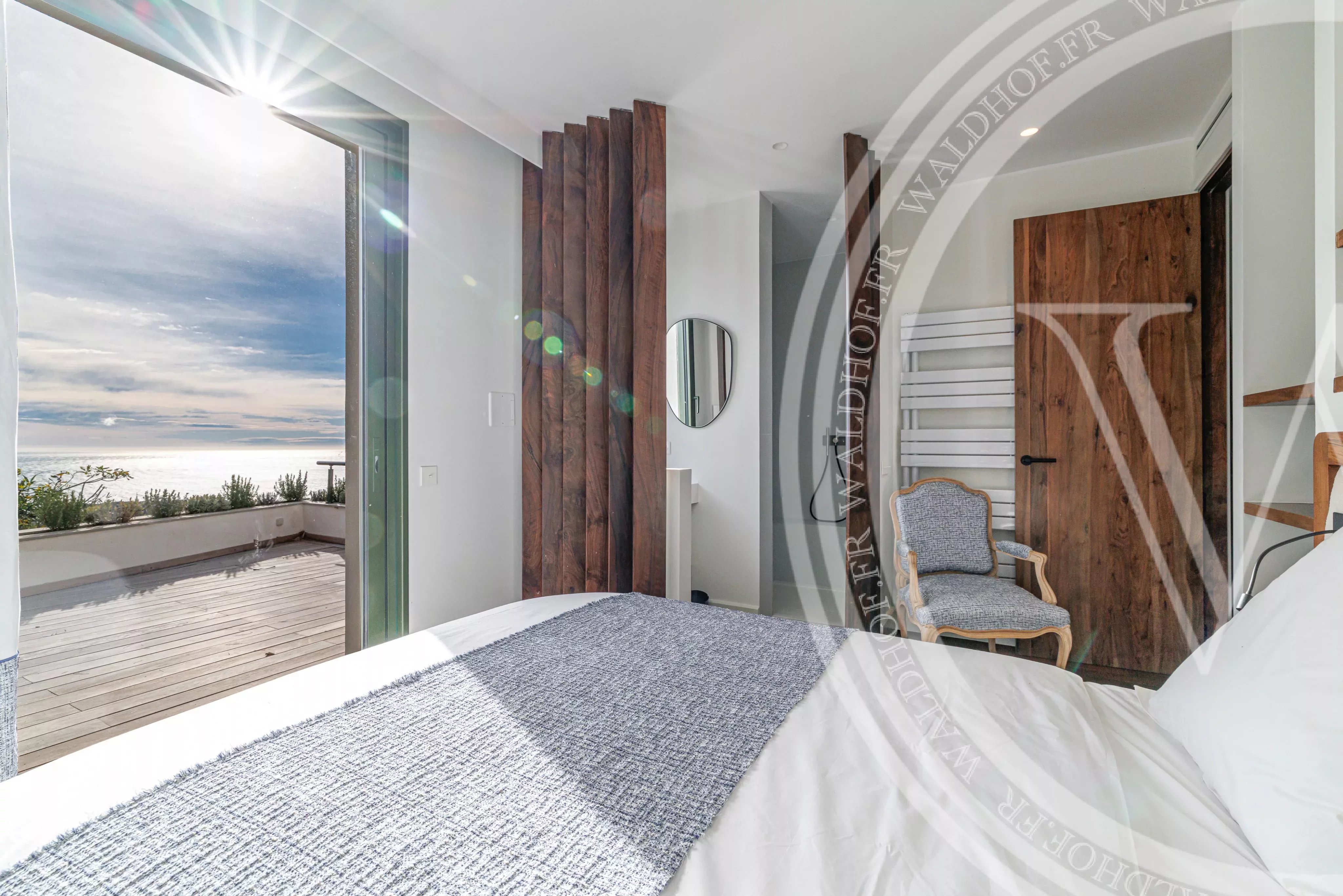 Bedroom 1: (independent) 1 queen-size double bed, living room, shower room and toilet, dressing room, sea-view terrace and Jacuzzi.