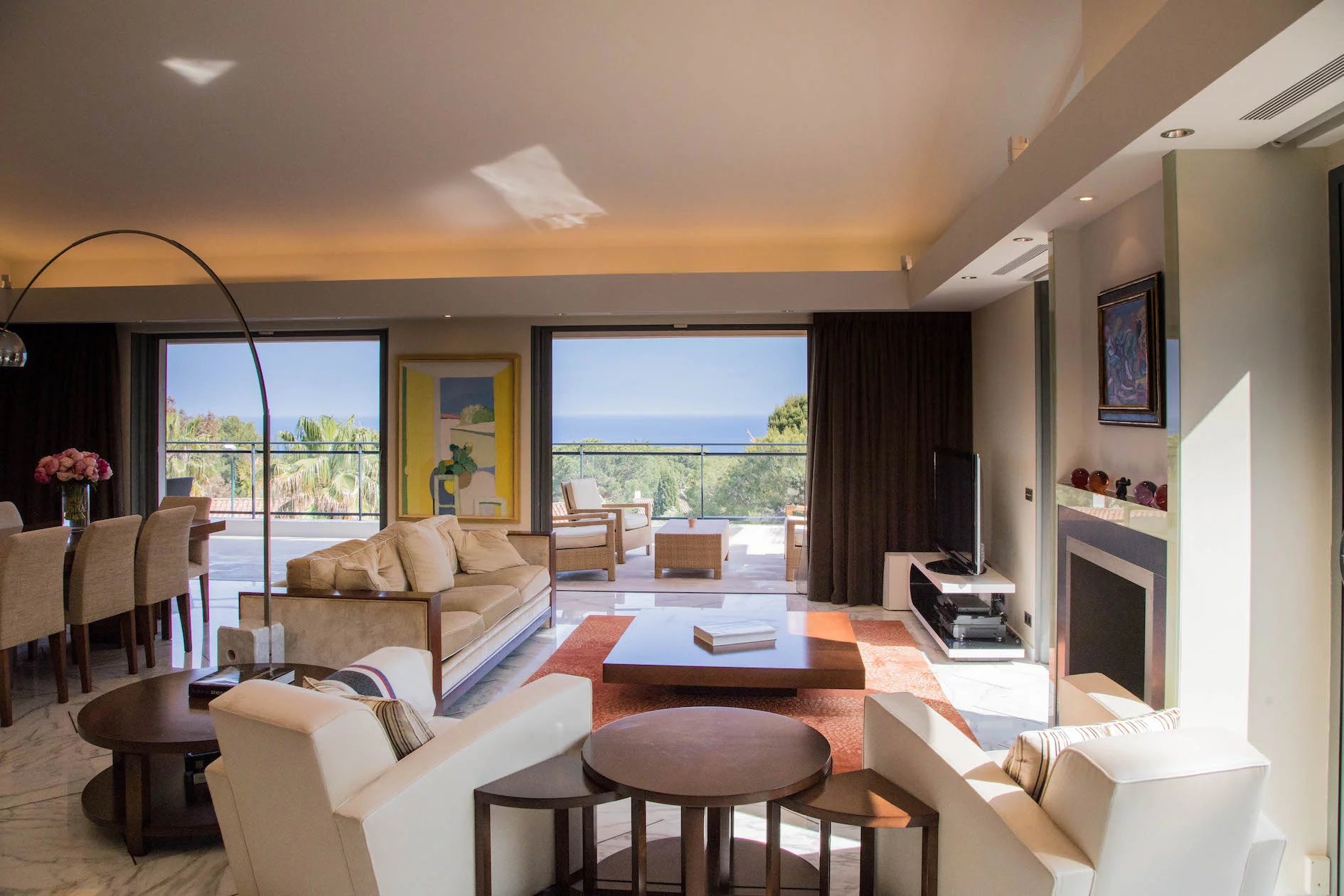 Villa Cap Ferrat in the immediate vicinity of the Grand Hotel Cap Ferrat, 120 m2 living room with terrace and panoramic sea views. 5 bedrooms, 45 m2 master suite and 5 superb contemporary bathrooms, glass elevator, GYM Sauna 2 car garage and 3 car parking and all without any civilisation noise, the rate in june and september are 70.000 E