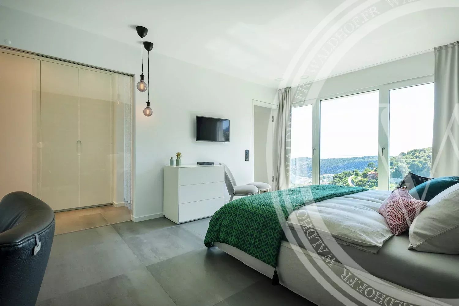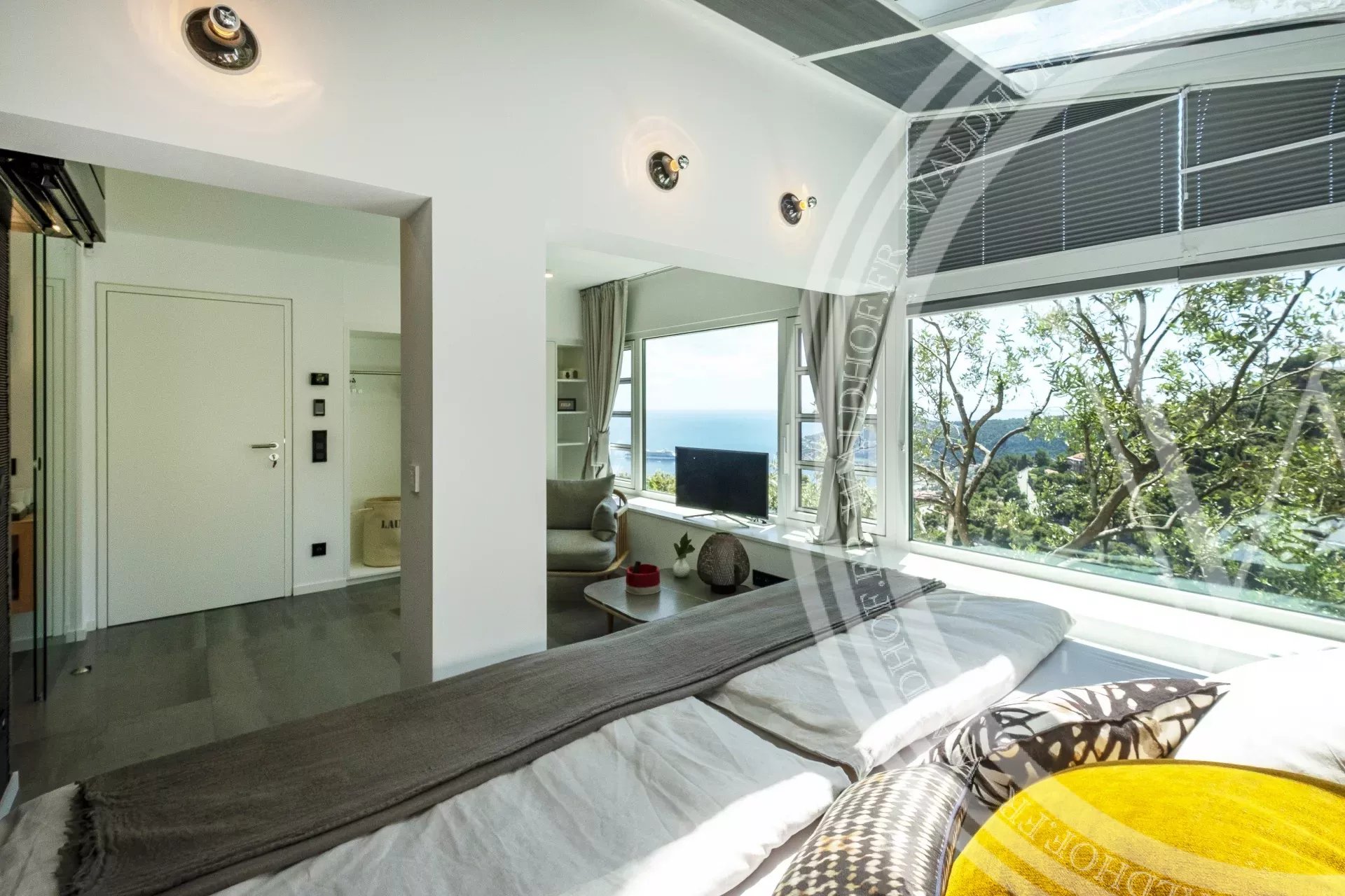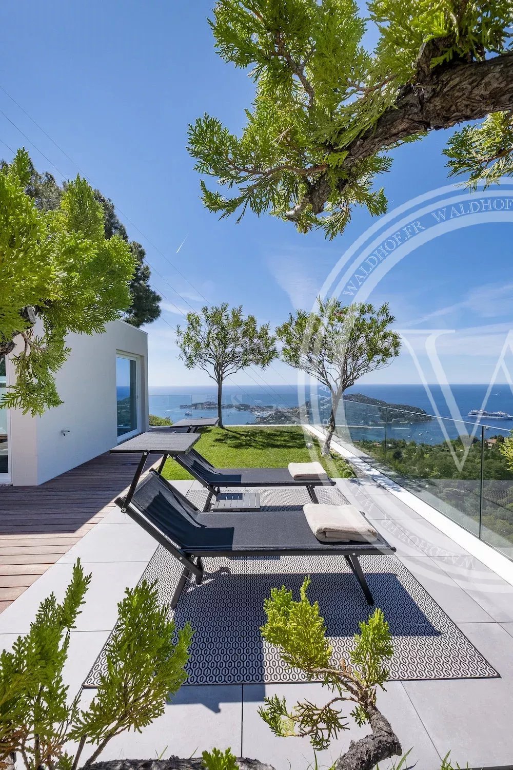 Discover this sophisticated villa, designed by a renowned architect, ideally located in the hills of Villefranche-sur-Mer. In a dominant position, it offers spectacular views of the Mediterranean Sea, yet is close to the town center and beaches.