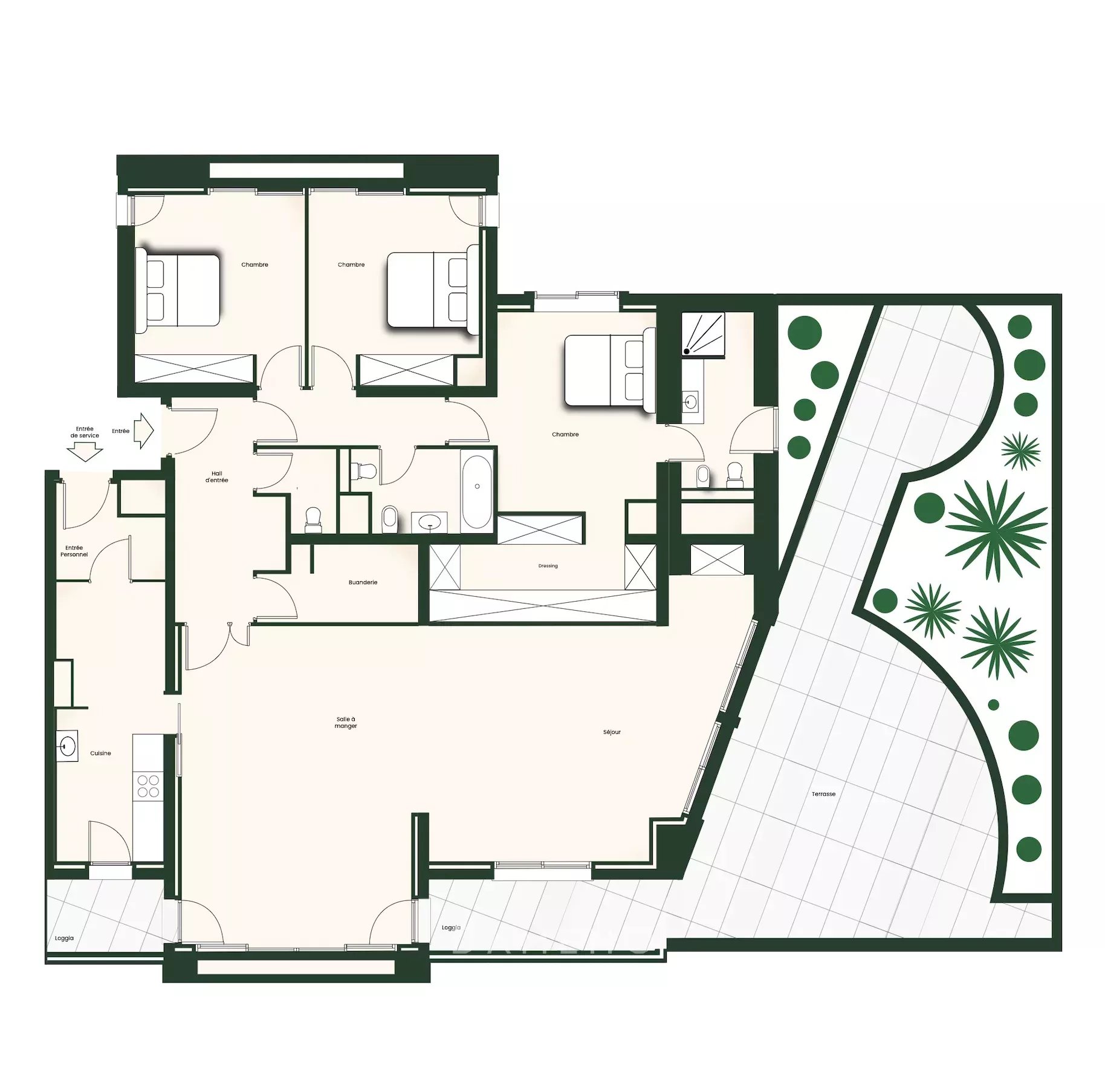 Composé d'un hall d'entrée, salon/séjour, une chambre de maître avec salle de bain et dressing, 2 chambres avec une salle de bain et WC, une grande cuisine séparée entièrement équipée, WC invités.