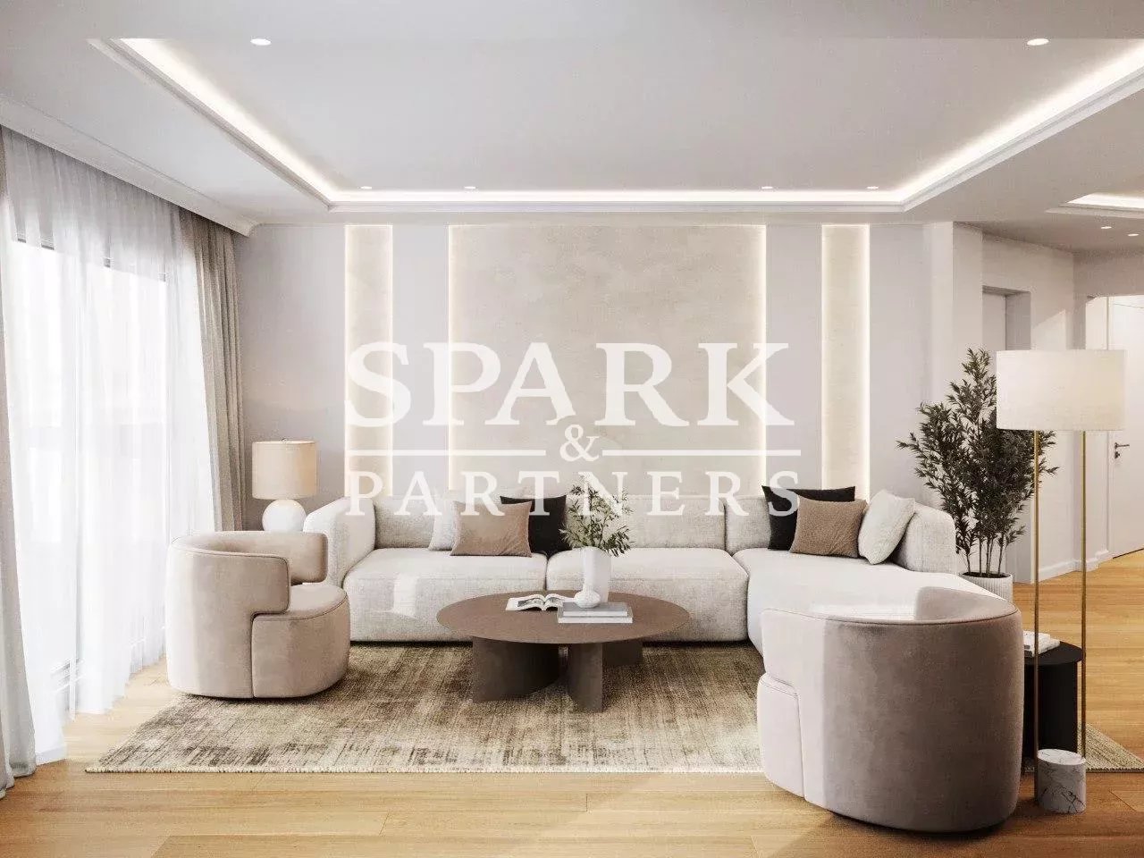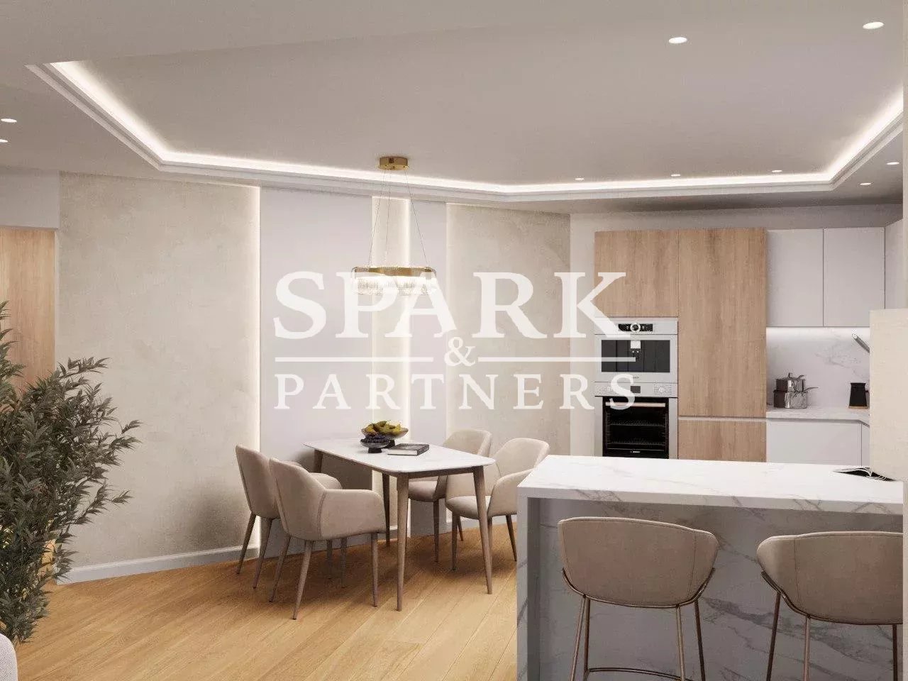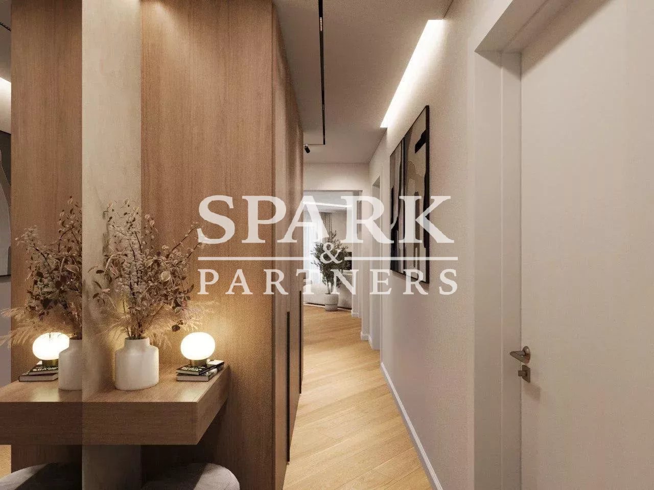 Chauffage au sol et parquet en chêne dans tout l'appartement, plus climatisation reversible.