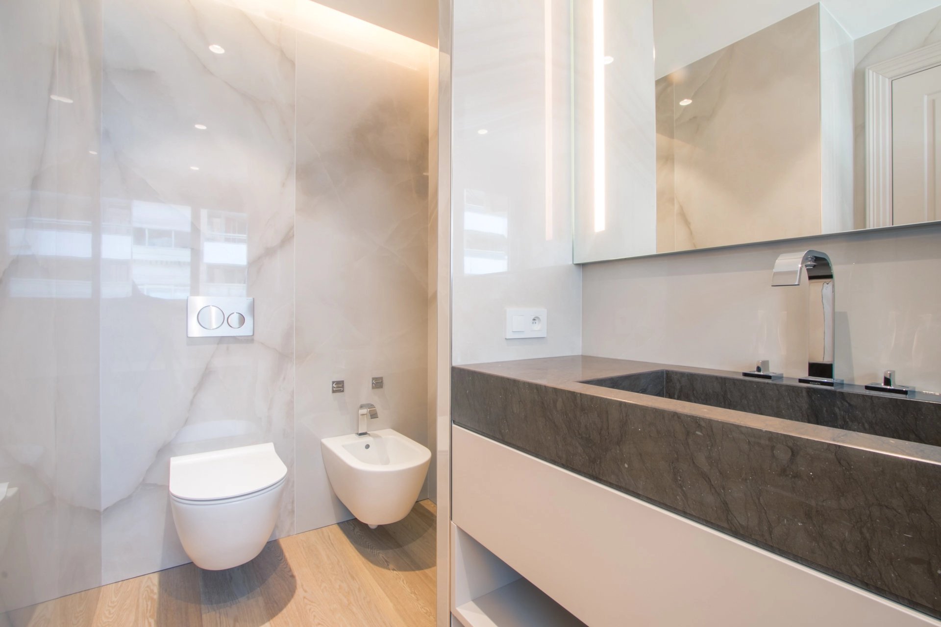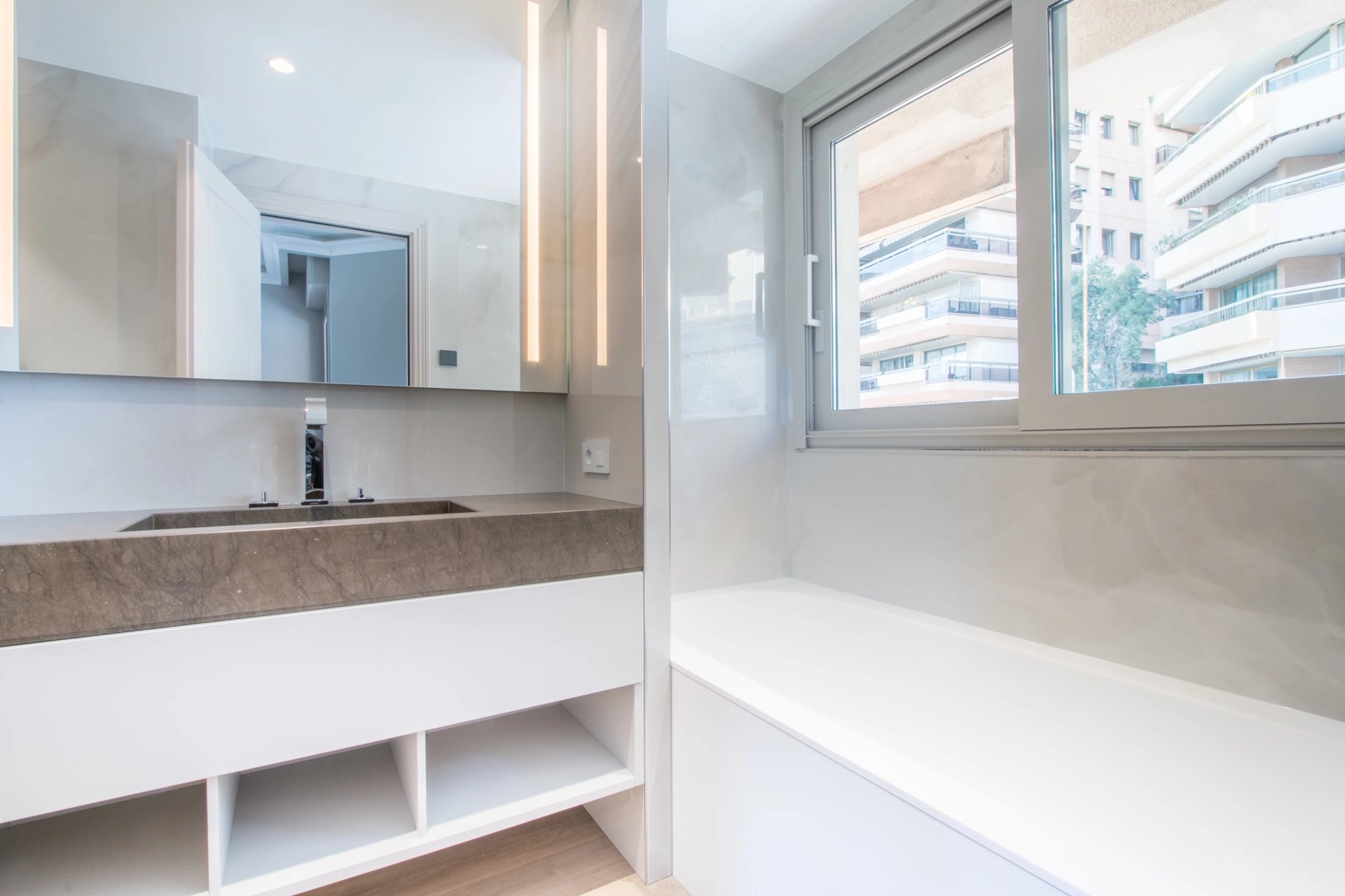 Elégant appartement 4 pièces totalement rénové avec des matériaux de qualité situé dans un immeuble de prestige avec concierge. En étage élevé, il bénéficie d'une superbe vue mer panoramique surplombant le port et le rocher. Composé d'un agréable séjour avec cuisine ouverte donnant sur une large terrasse couverte, une chambre de maitre avec salle de bain en suite, une seconde chambre avec salle de douche, une troisième chambre ou bureau avec salle de douche. Il dispose d'un système domotique intégral, du chauffage au sol et de la climatisation reversible dans toutes les pièces. Une place de parking fermé (box) en sous-sol complète ce bien.
