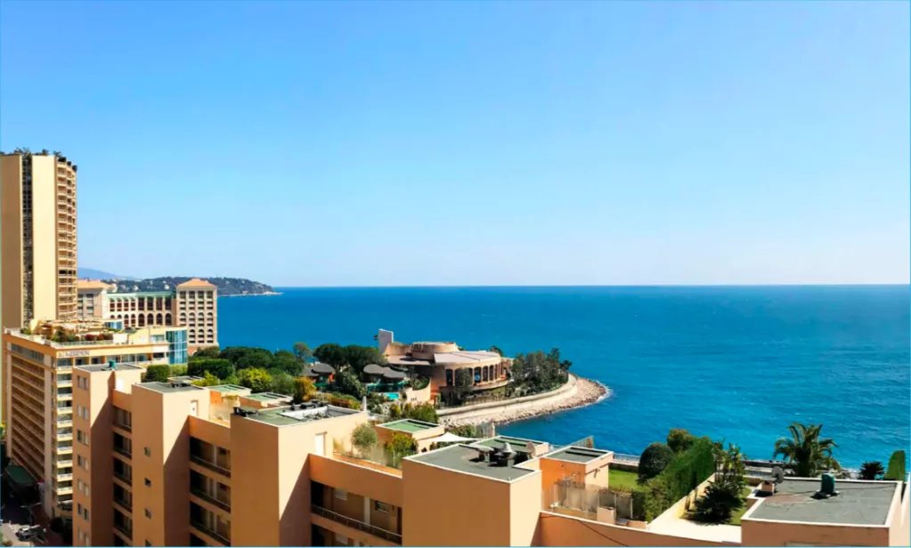 Appartement situé à 'Château Amiral', une résidence de luxe à Monaco, à quelques pas de la plage dans un quartier résidentiel attrayant proche de toutes les commodités. Vue sur la mer Méditerranée, le Cap Martin et le Sporting Monte Carlo.