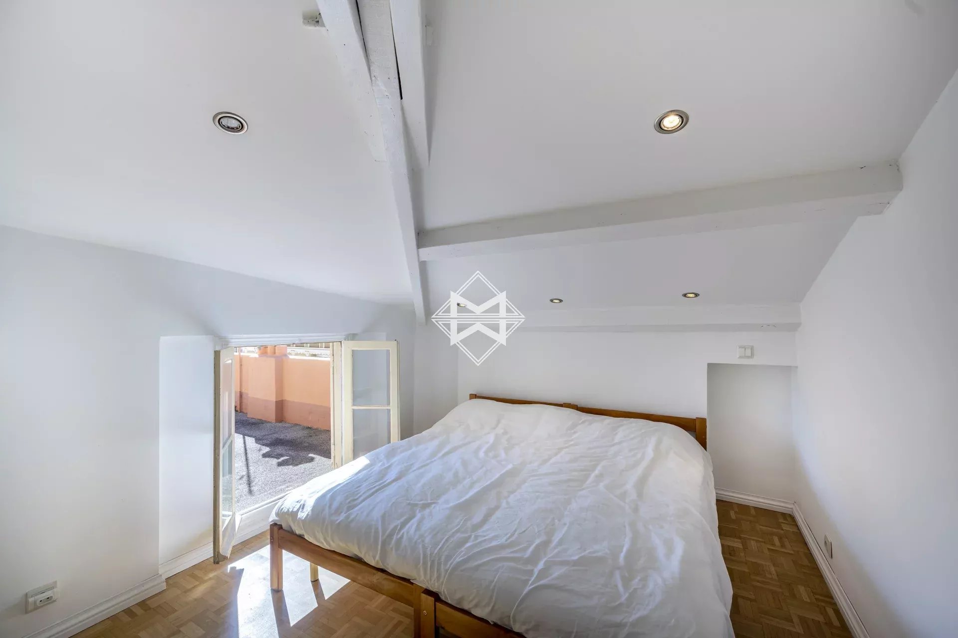 Deux pieces composé d’une belle chambre, cuisine ouverte, et salle de douche. L’ensemble donnant accès à une terrasse à usage commun aux copropriétaire.