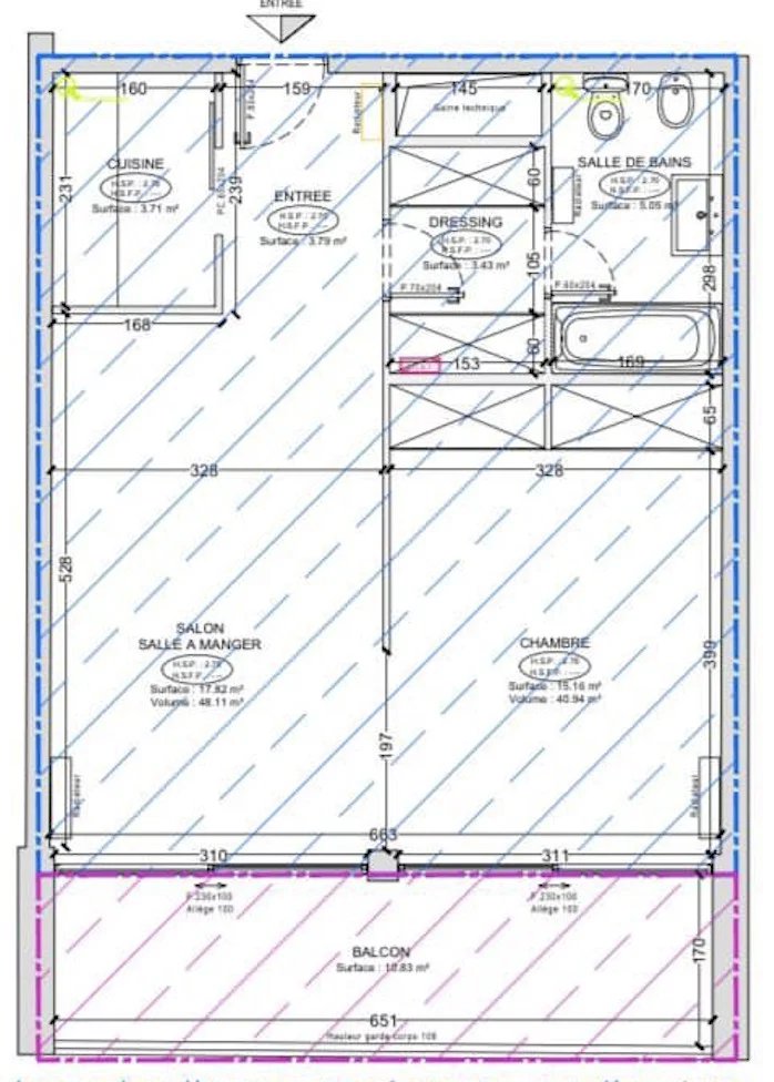 L’appartement se compose d’un hall d’entrée, d’une cuisine séparée, d’un séjour ouvrant sur un balcon vue mer, d’une chambre ainsi que d’une salle d’eau. Des rangements complètent l’ensemble.