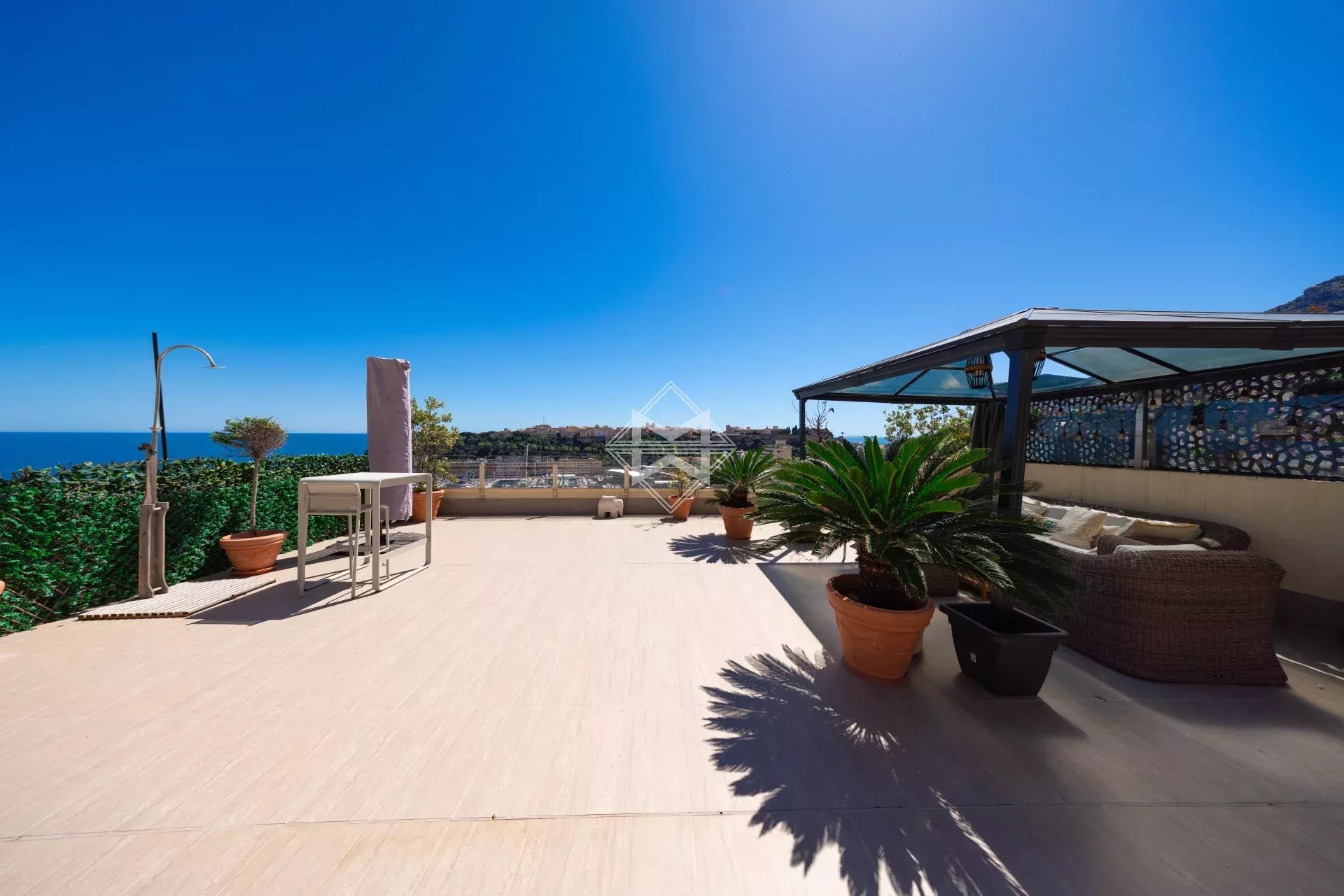 Situé dans la prestigieuse résidence Rose de France, sur le Boulevard de Suisse, ce superbe duplex avec terrasse rooftop offre une vue imprenable sur le Port Hercule et le Rocher.