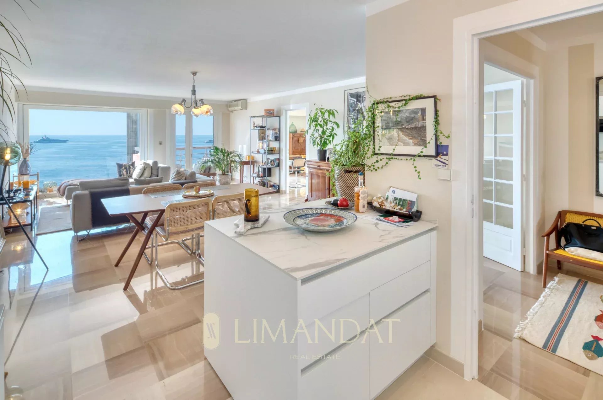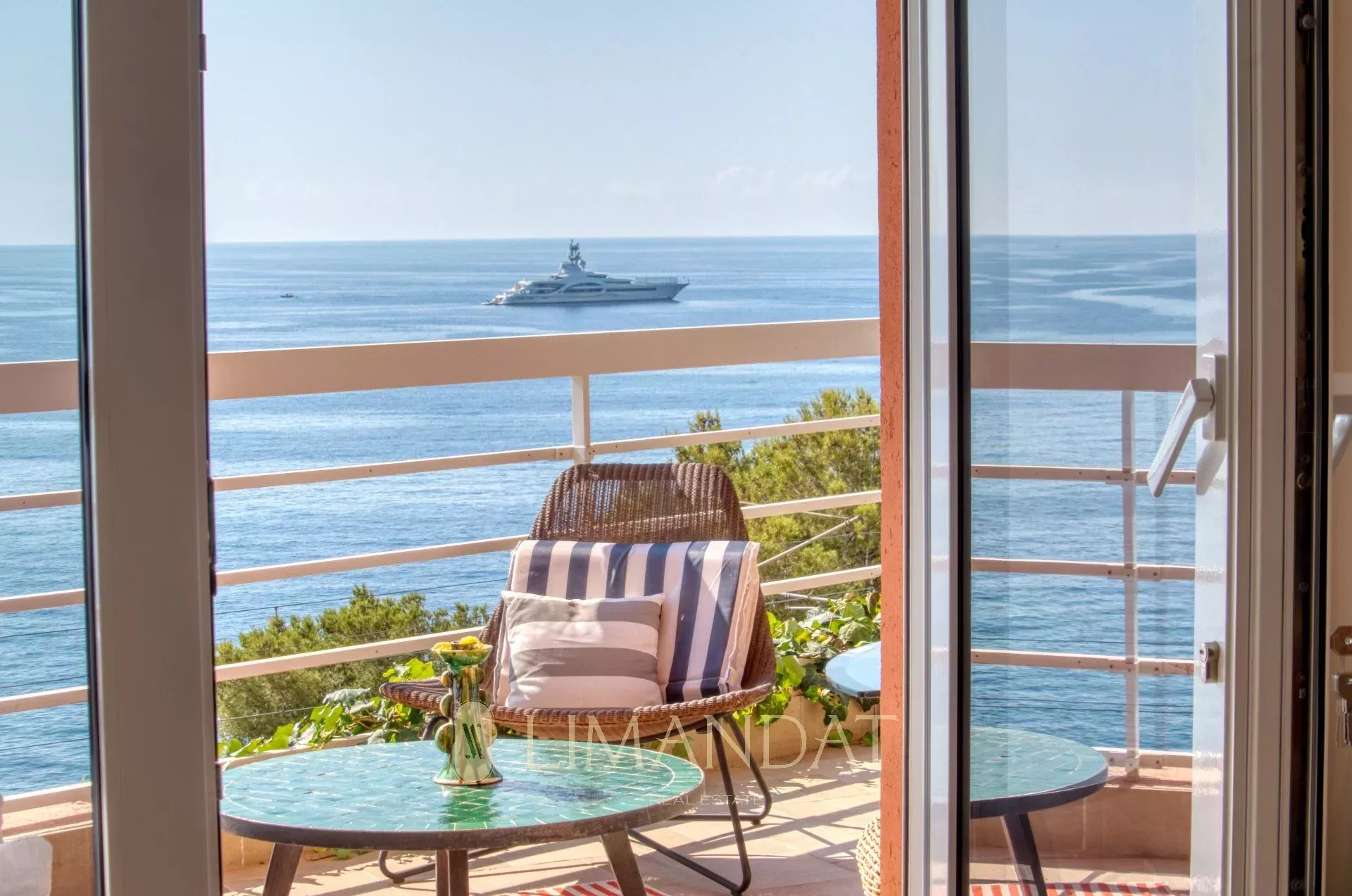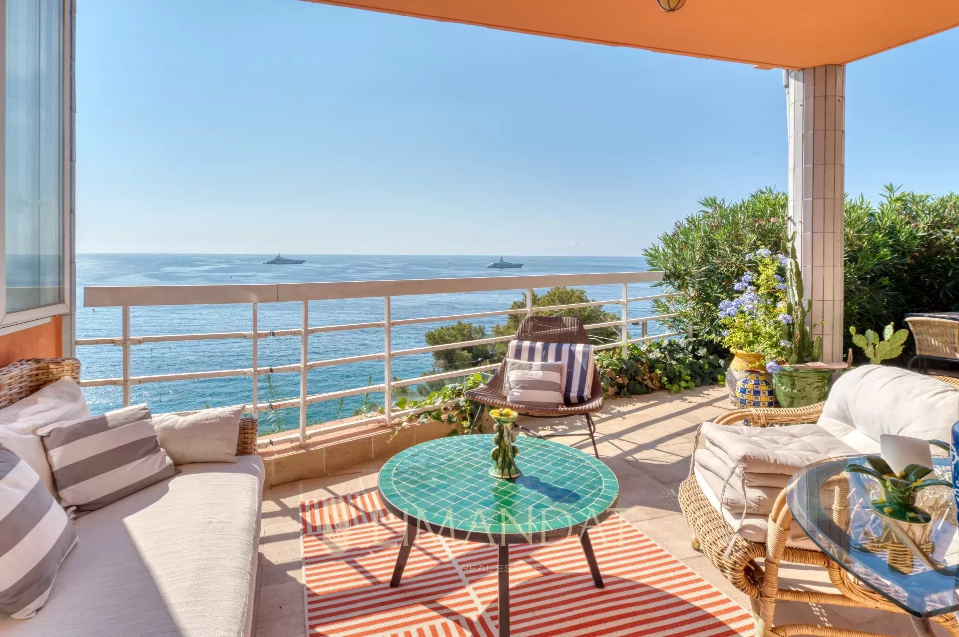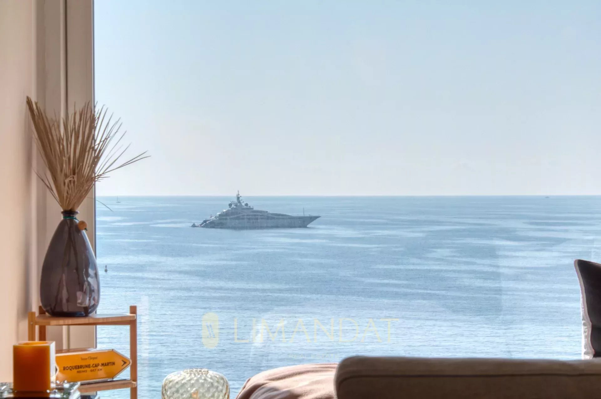 EXCLUSIVITE - Roquebrune Cap Martin, secteur privilégié de Cabbé, à une minute de Monaco, appartement d’exception en pleine vue mer, au calme, sans aucune construction possible devant, dans résidence de standing équipée de la fibre optique, magnifique 3 pièces de 93 m2, terrasse et jardin attenant de 70 m2, un garage en accès direct à l’appartement et cave. Cet appartement, en parfait état, bien agencé, se compose d’une entrée avec placard, spacieux séjour avec cuisine ouverte haut de gamme entièrement équipée, 2 chambres ouvrant sur terrasse, placards, salle de bain et salle douche avec wc.