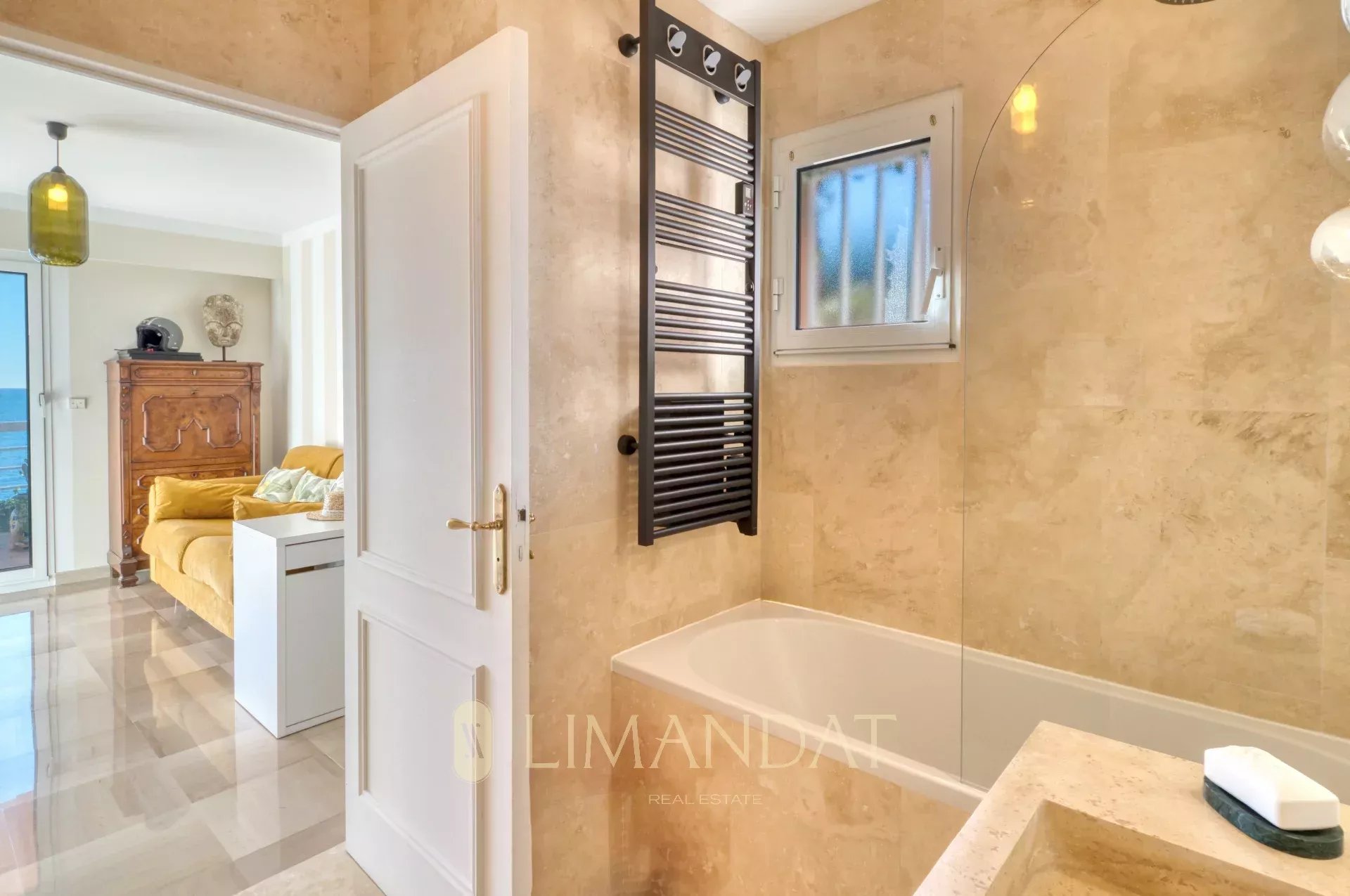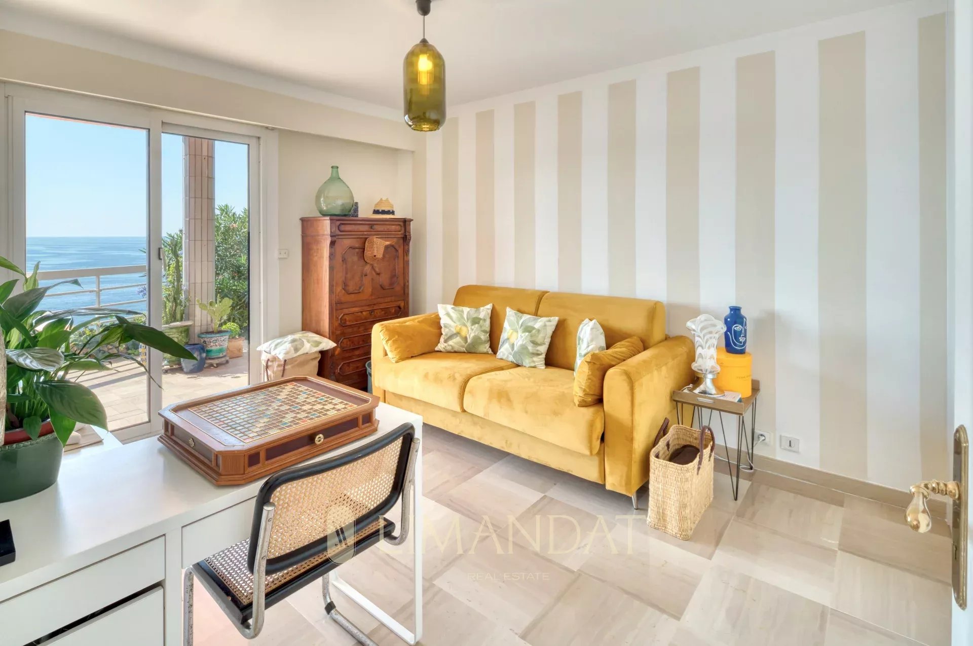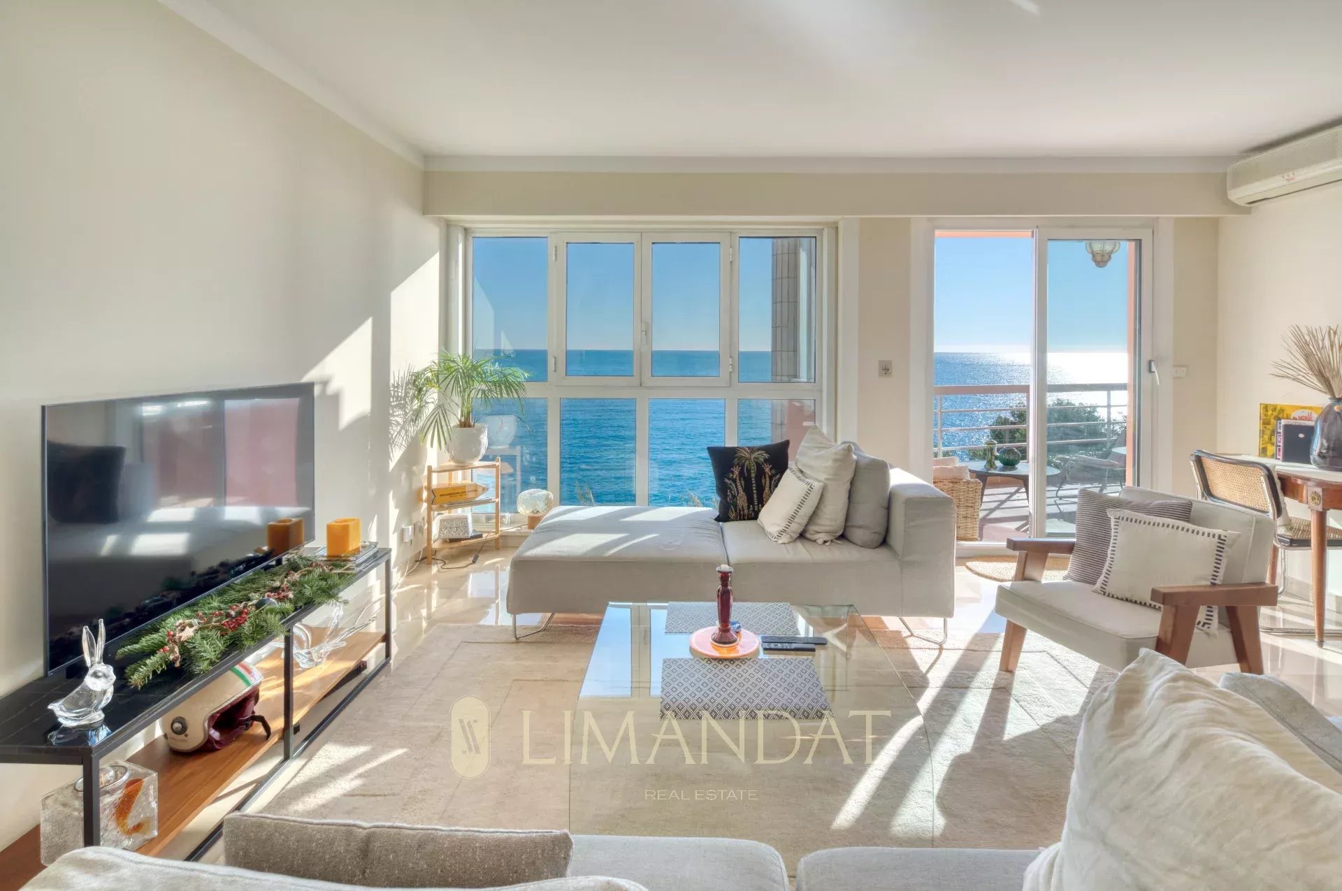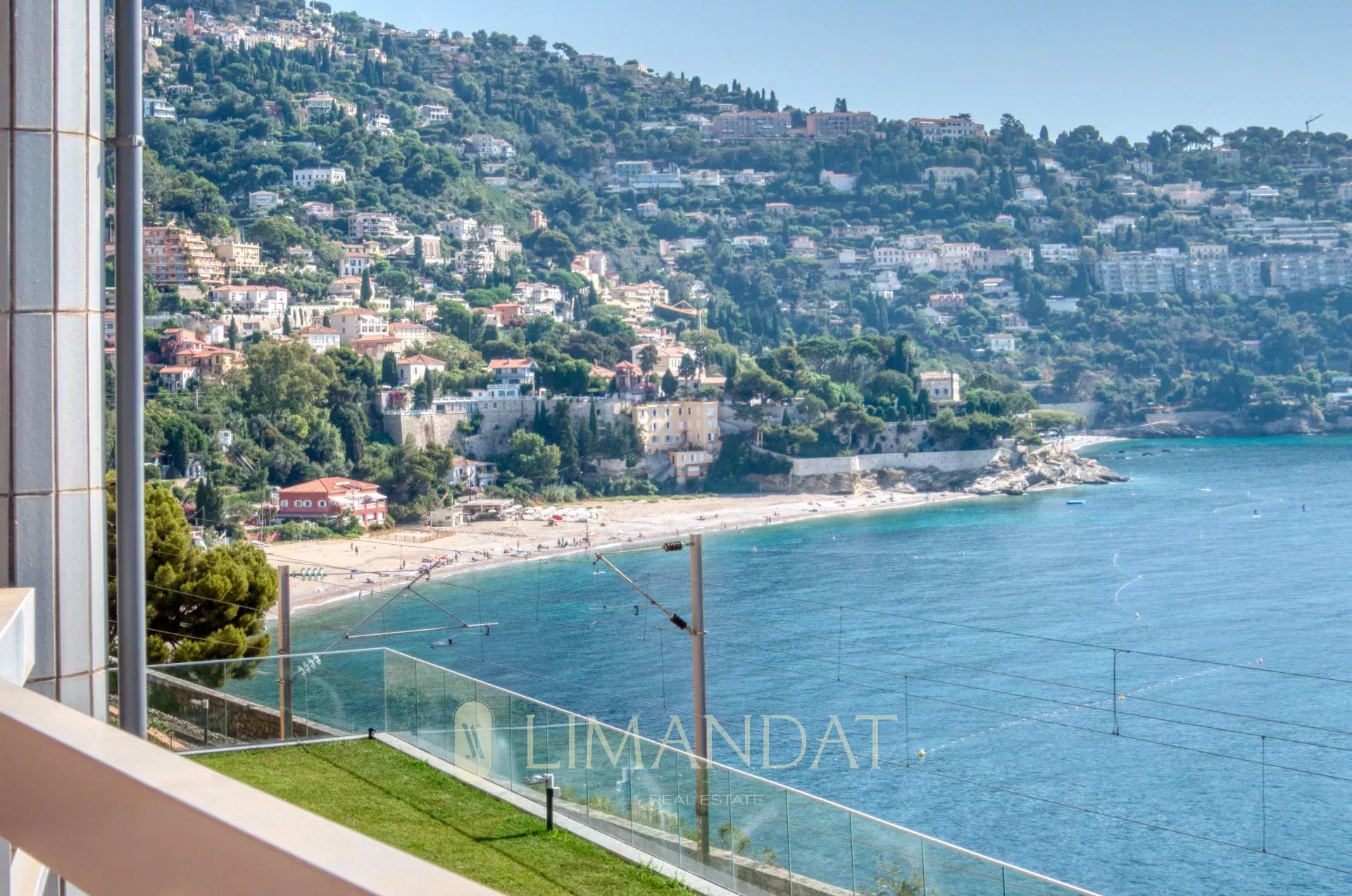 EXCLUSIVITE - Roquebrune Cap Martin, secteur privilégié de Cabbé, à une minute de Monaco, appartement d’exception en pleine vue mer, au calme, sans aucune construction possible devant, dans résidence de standing équipée de la fibre optique, magnifique 3 pièces de 93 m2, terrasse et jardin attenant de 70 m2, un garage en accès direct à l’appartement et cave. Cet appartement, en parfait état, bien agencé, se compose d’une entrée avec placard, spacieux séjour avec cuisine ouverte haut de gamme entièrement équipée, 2 chambres ouvrant sur terrasse, placards, salle de bain et salle douche avec wc.