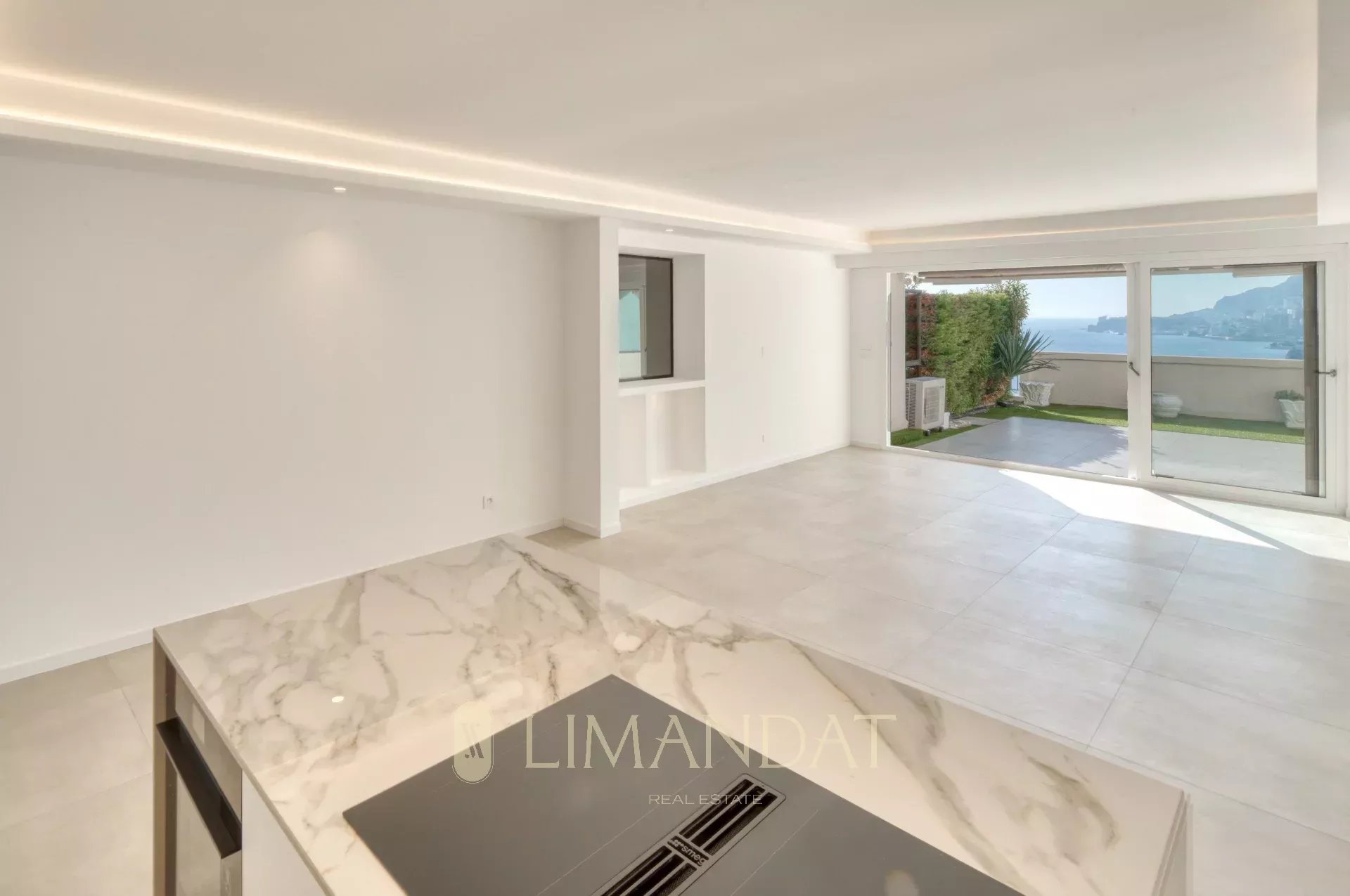 Entièrement rénové en 2024, ce bien de 102.29 m² habitable (80.49 m² Loi Carrez et anciennement loggia de 21.80 m²), offre un espace raffiné, composé d'une entrée accueillante avec dégagement et placards, un séjour lumineux, avec cuisine américaine équipée, ouvert sur la loggia et la grande terrasse de 34 m², offrant une vue panoramique sublime sur la mer, les plages du Golfe Bleu, Monaco, jusqu’à Saint-Jean-Cap-Ferrat.