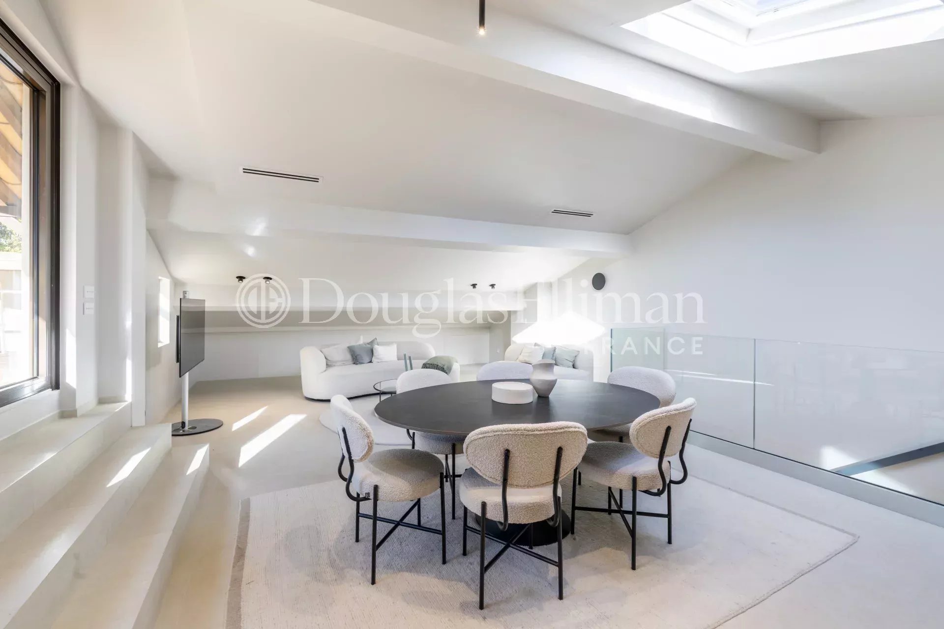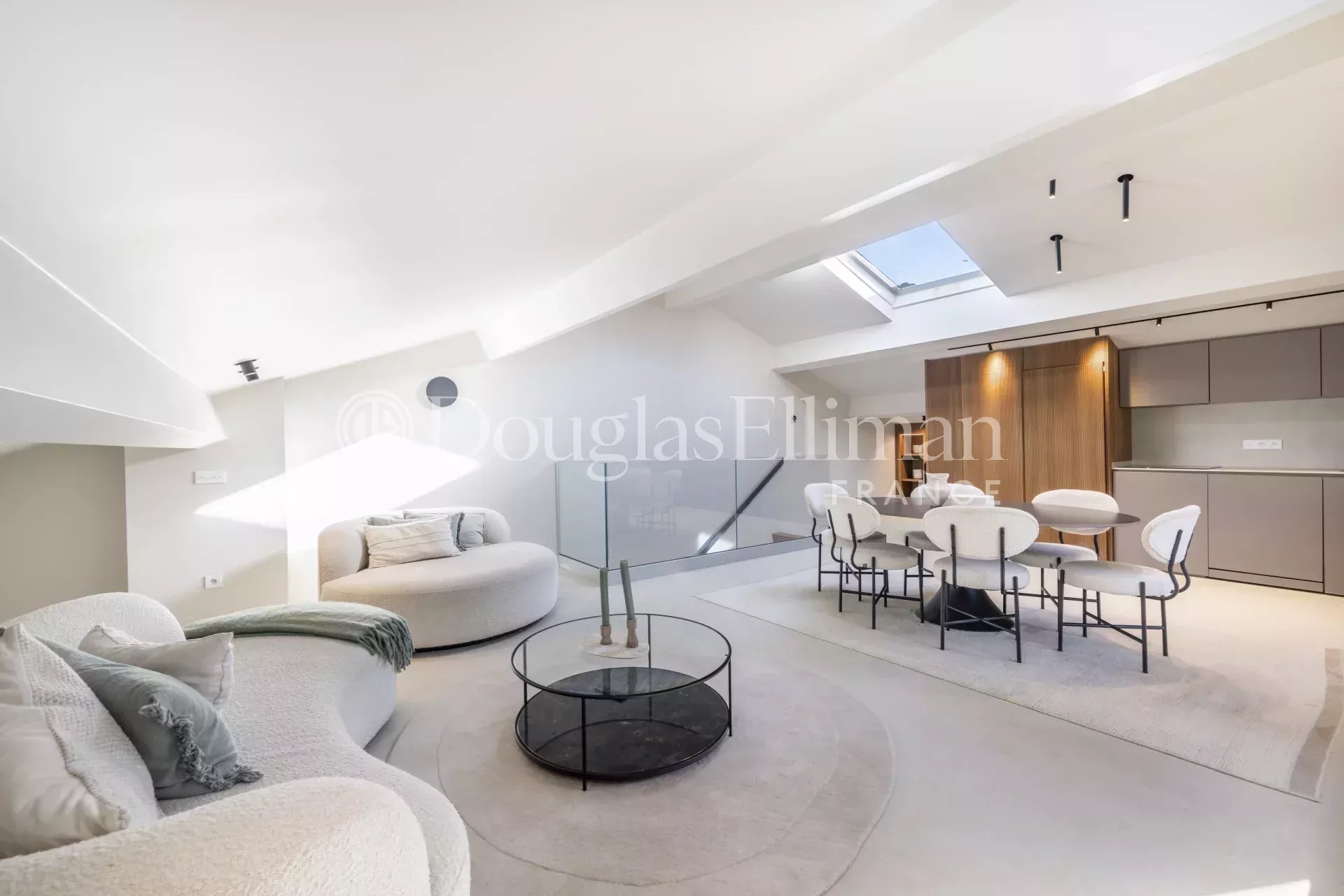 Au deuxième niveau, une magnifique pièce de vie avec plafond cathédrale, cuisine américaine, cave à vin et une buanderie pouvant aussi servir d'arrière cuisine, le tout s'ouvrant sur une très grande terrasse unique de 77m2 disposant d'une cuisine d'été, de bain de soleil ainsi que d'une table à manger.