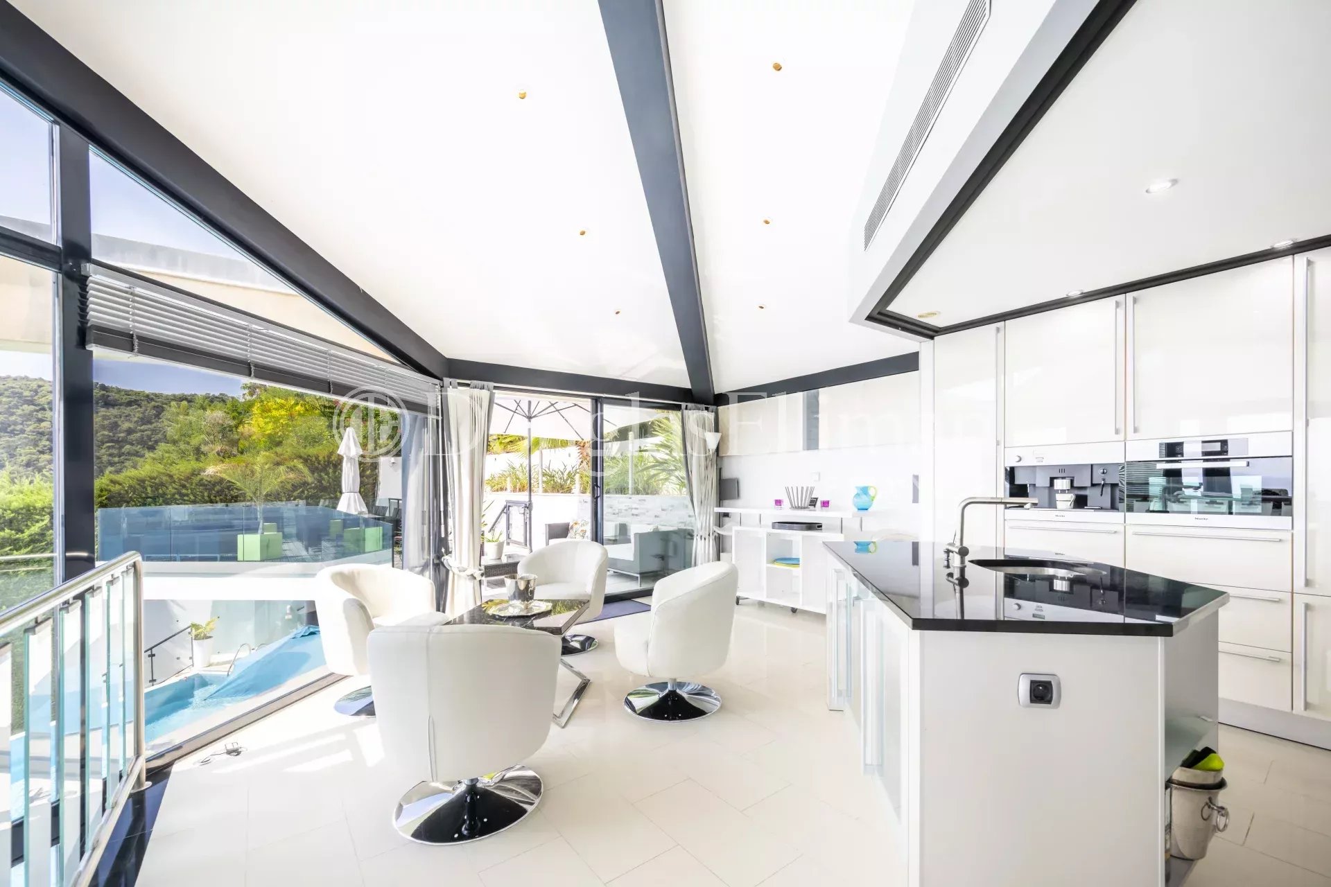 Située en position dominante à Eze bord de mer, entre Monaco et Saint-Jean-Cap-Ferrat cette villa contemporaine d'exception bénéficie d’une vue panoramique imprenable sur la mer Méditerranée et offre des prestations modernes et raffinées.