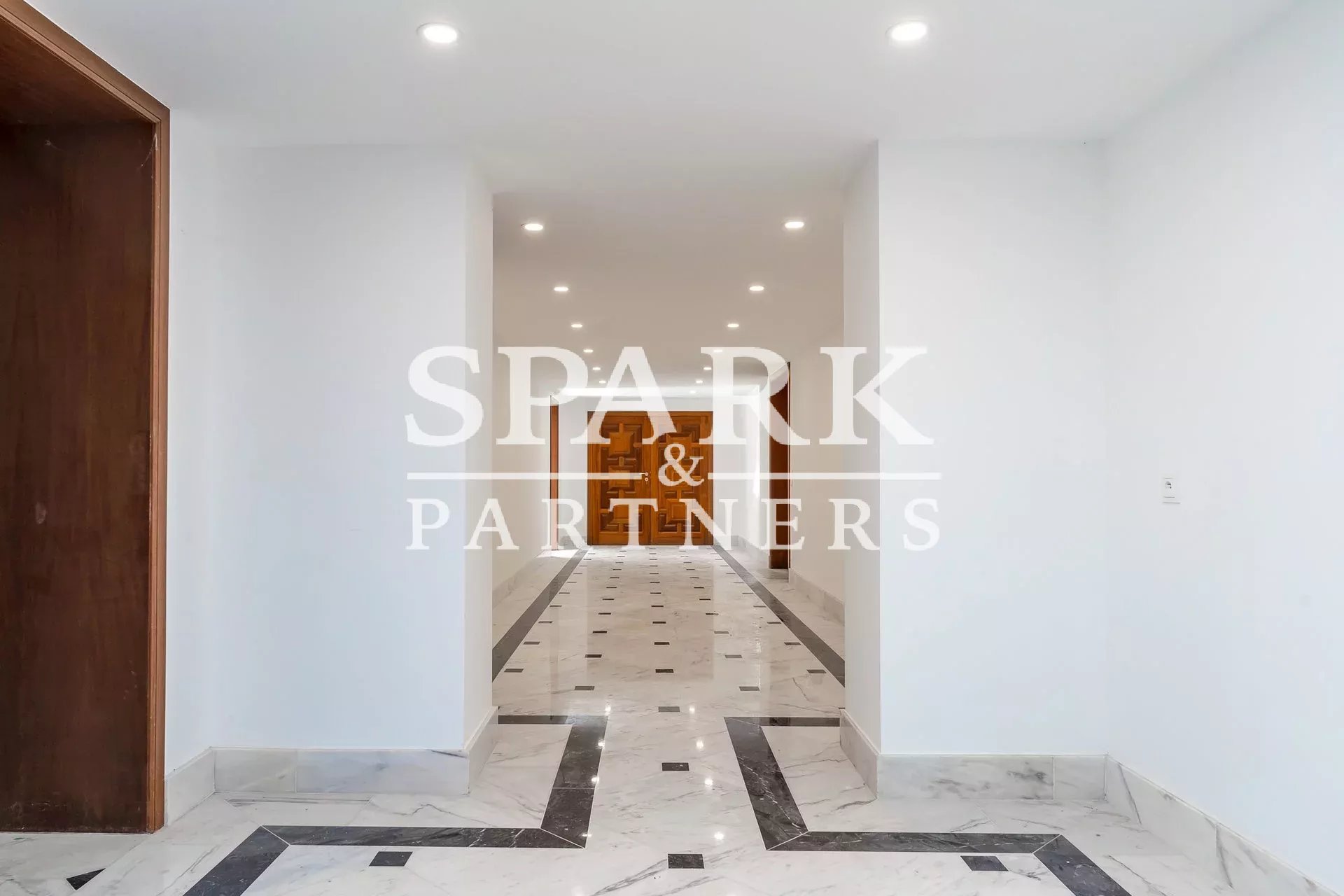 D’une surface habitable d’environ 1.700 m² répartie sur quatre niveaux, la propriété a été entièrement rénovée avec des matériaux nobles et des finitions haut de gamme. Elle s’ouvre sur un vaste hall d’entrée menant à une double réception, une élégante salle à manger ainsi qu’une cuisine indépendante.
