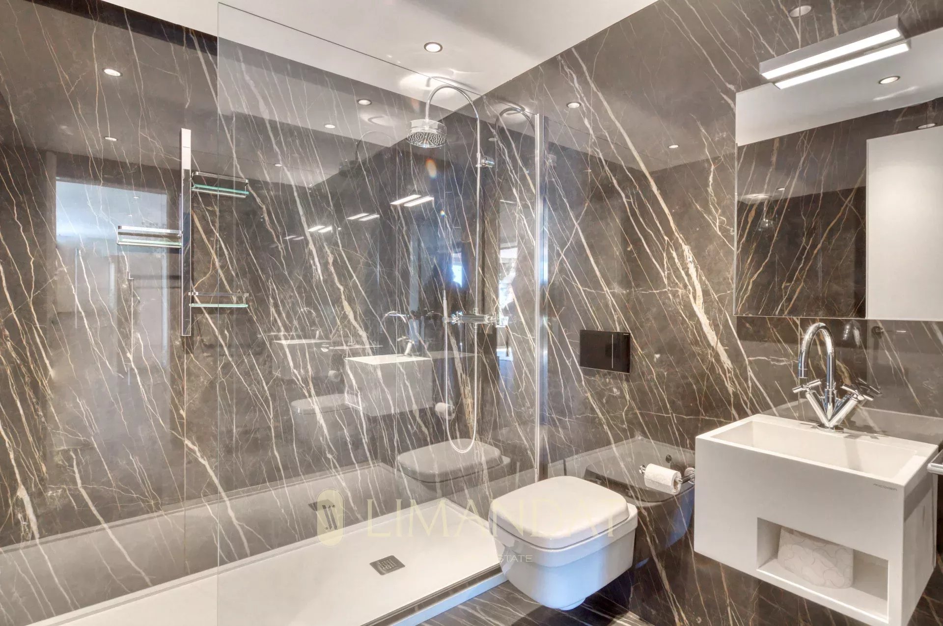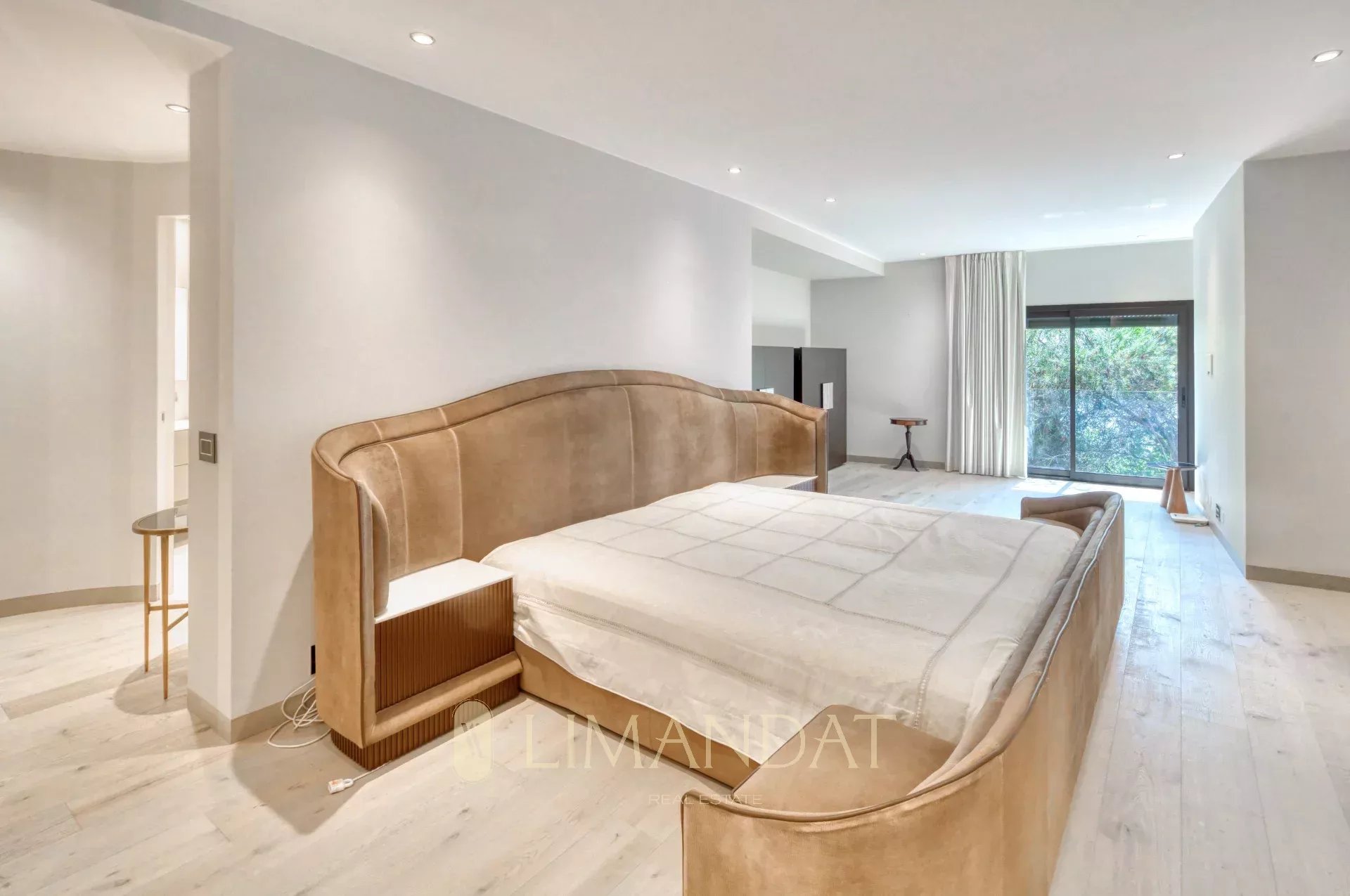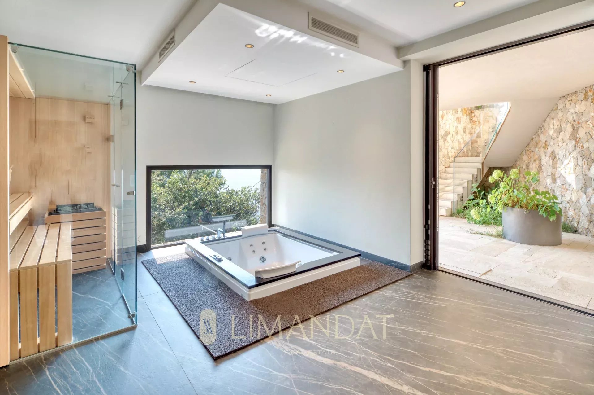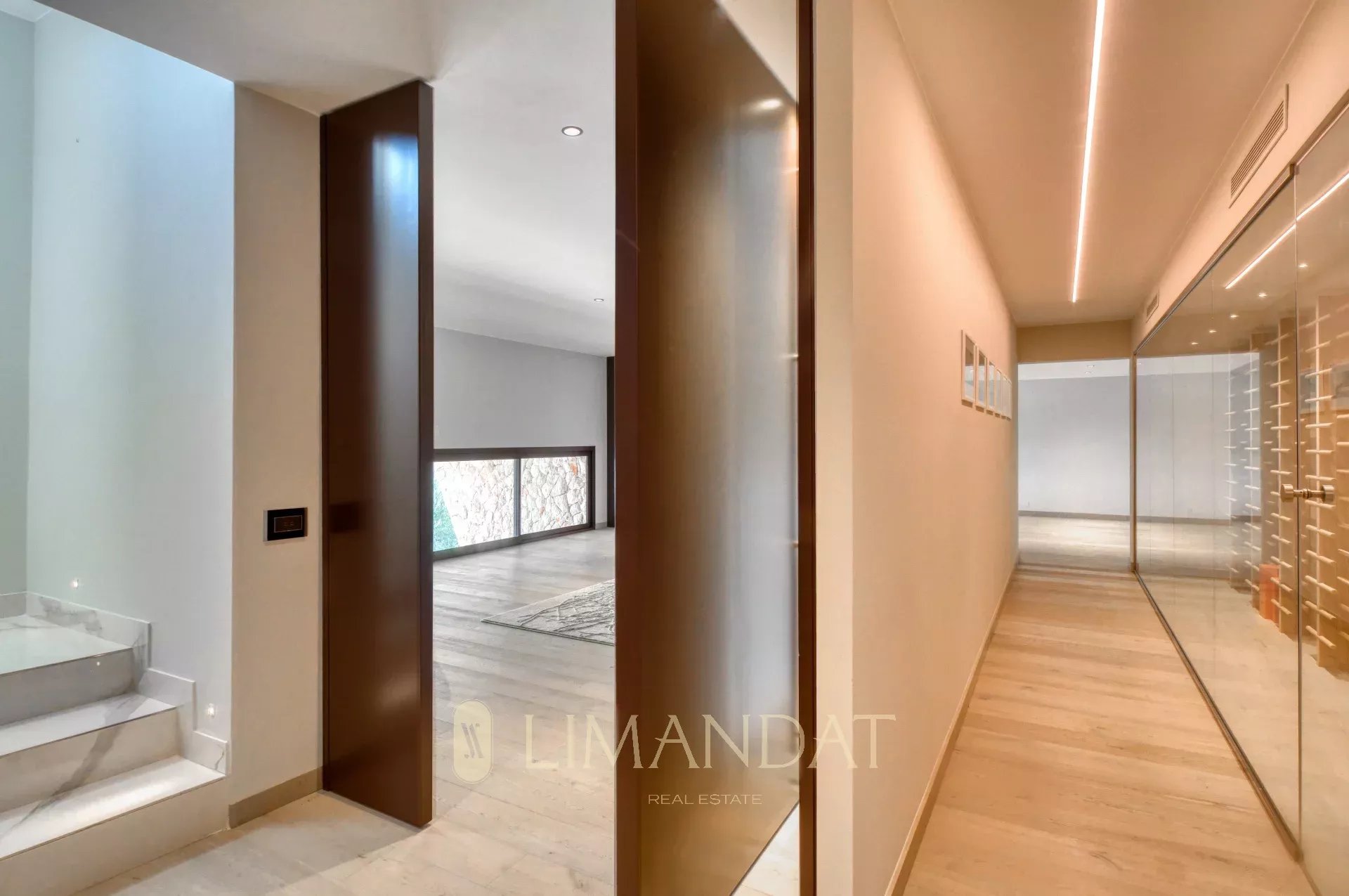 Au rez-de-jardin, une cave à vin à température contrôlée, une salle de sport équipée et un espace bien-être avec jacuzzi, hammam, sauna et salle de massage offrent un cadre idéal pour la détente. Un appartement indépendant, parfait pour le personnel ou des invités, dispose de son propre accès. Depuis cet étage, on accède aux jardins et à un espace de repos face à la mer.