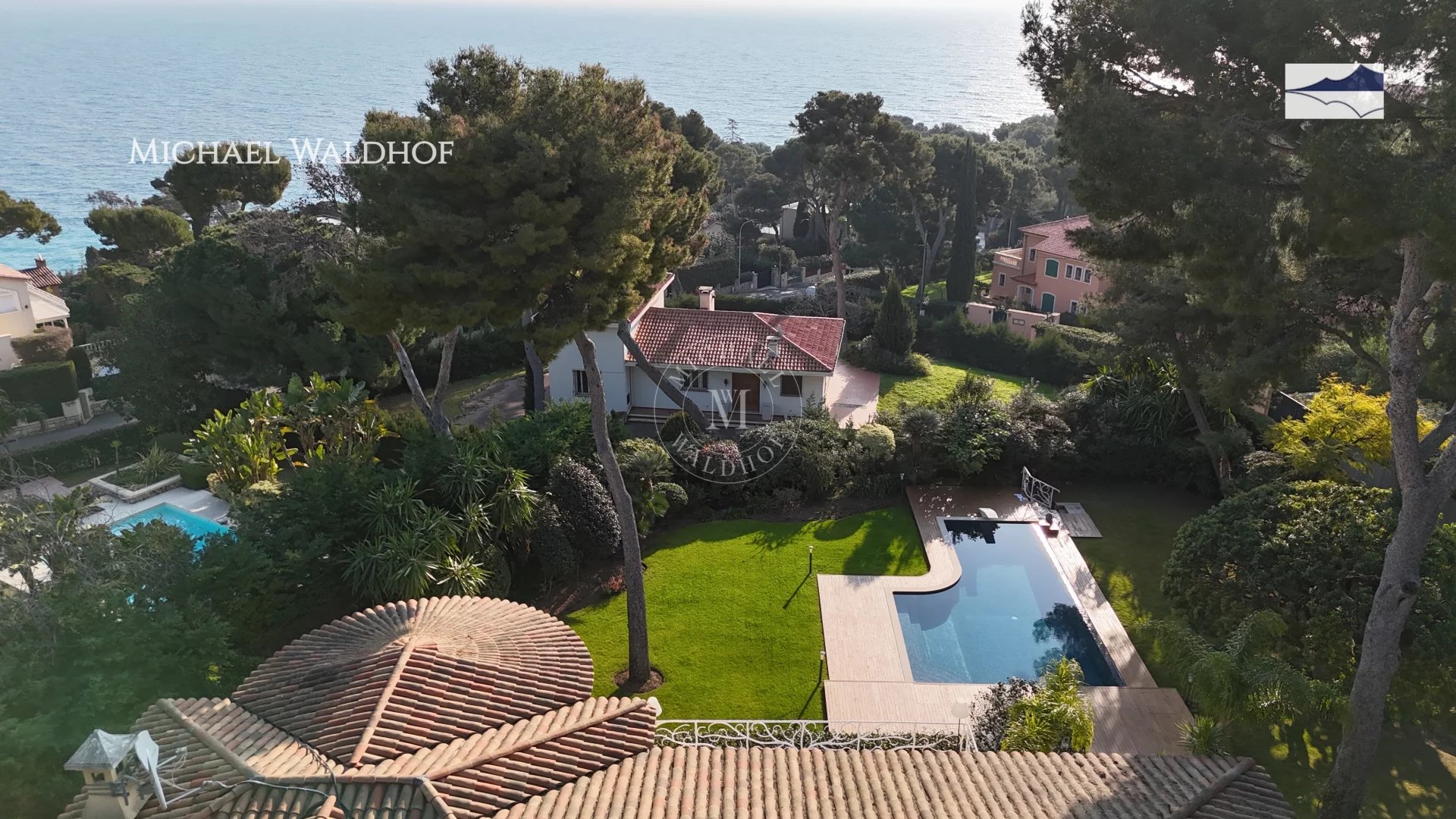 À seulement 100 mètres du bord de mer, cette villa récemment rénovée sur le prestigieux Cap Martin offre une immersion rare dans la Méditerranée, entourée à 80% par la mer. Nichée au cœur d'une forêt de pins, à 40 mètres au-dessus de l'eau, la propriété allie confidentialité absolue et beauté naturelle, où le chant des oiseaux au matin et la brise douce de la mer rythment vos journées.