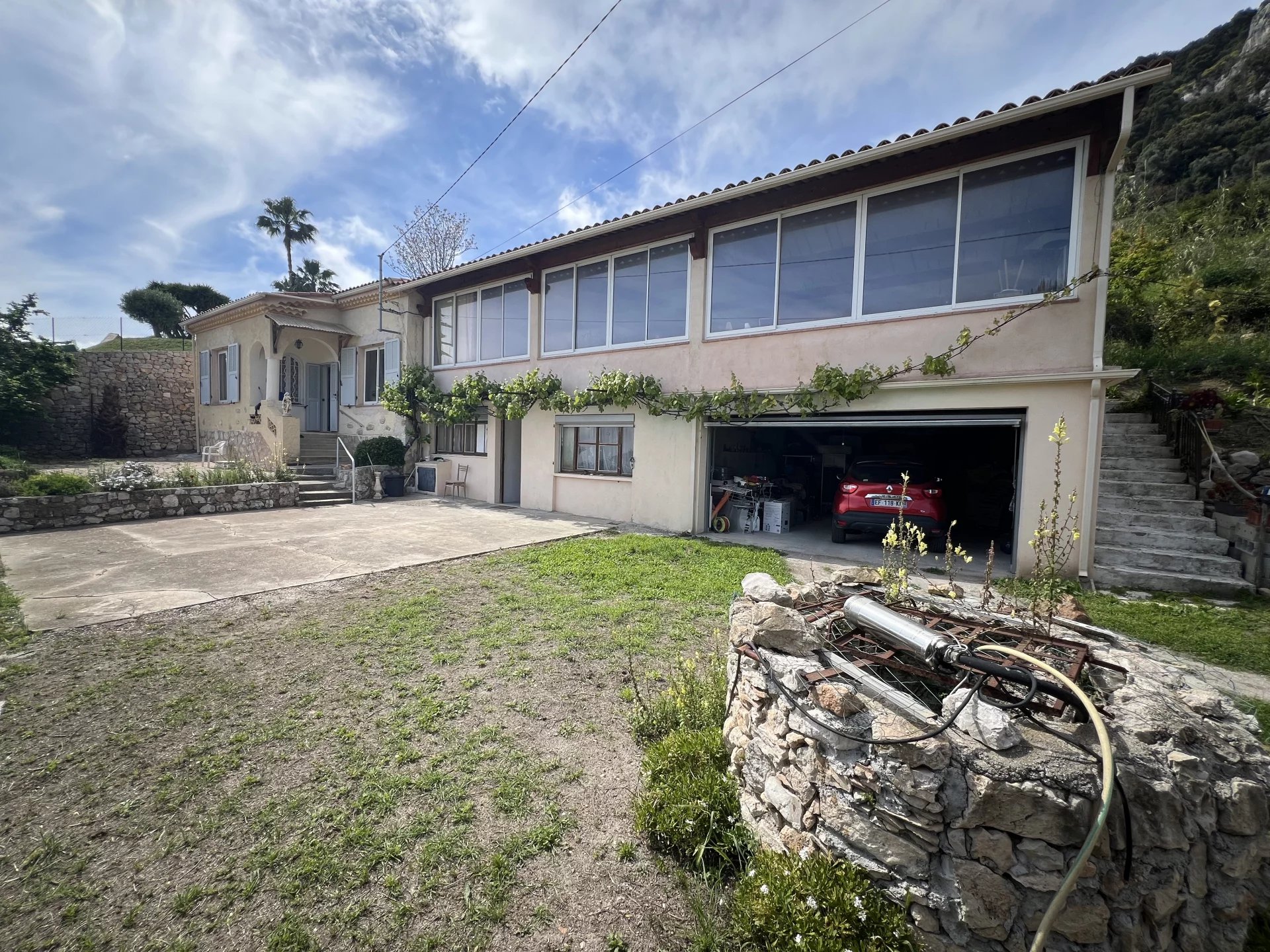 Propriété de rêve entourée d'un terrain de 6 000 m², avec la sensation de vivre à la campagne tout en étant à 5 minutes du quartier animé de Beaulieu, le tout avec une vue panoramique sur le Cap Ferrat, la baie de Villefranche et les contreforts du Mont Baron. Le bâtiment existant, orienté au sud, offre une surface habitable de 220 m², le garage indépendant a une superficie de 45 m². Notre avis : un terrain de 6 000 m² offre l'avantage de ne pas avoir de voisins directs. Les propriétés de 6 000 m² se trouvent généralement dans une gamme de prix à partir de 15 millions d'euros. Cette propriété offre donc une opportunité unique à un prix très raisonnable, mais la rénovation représente un défi.