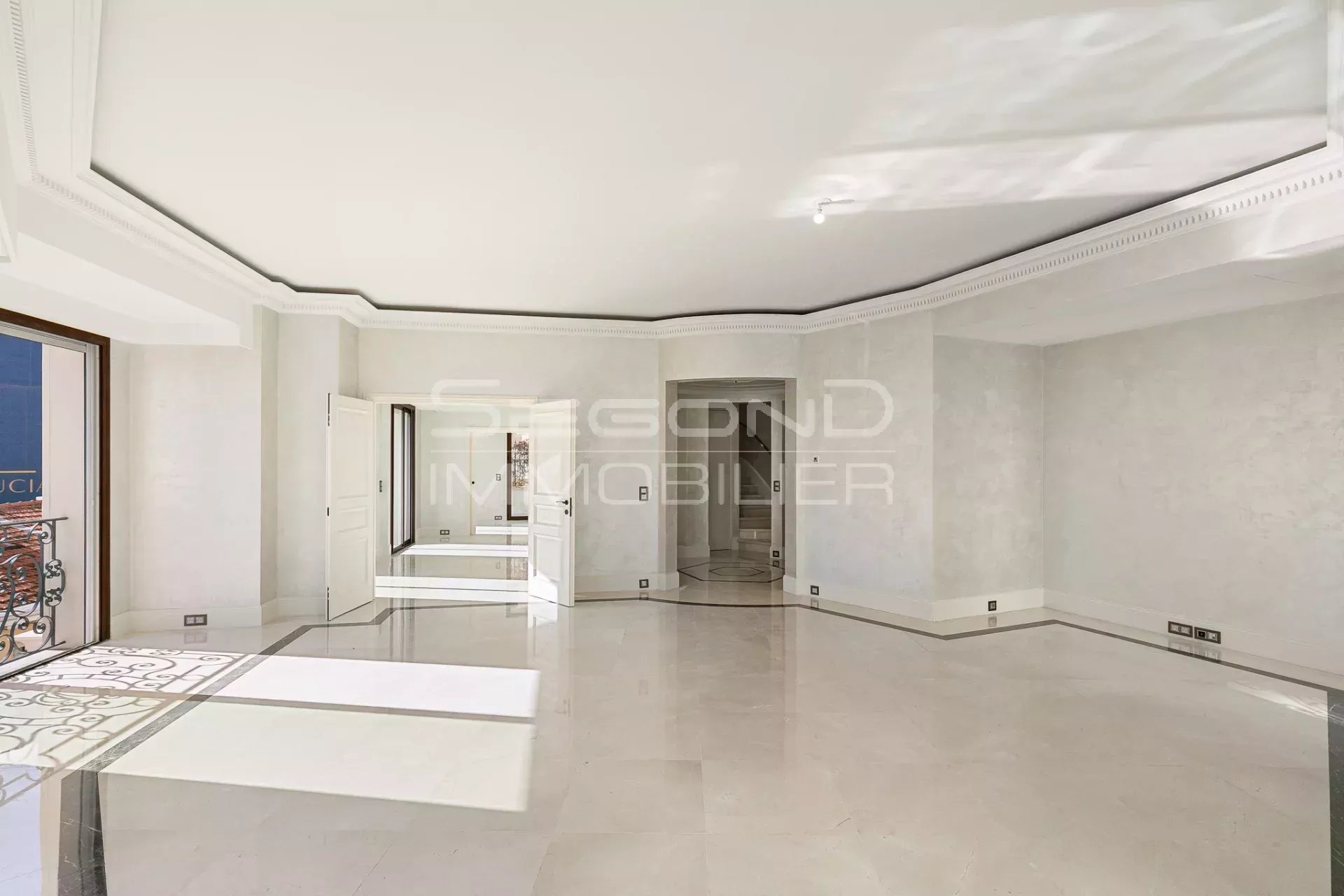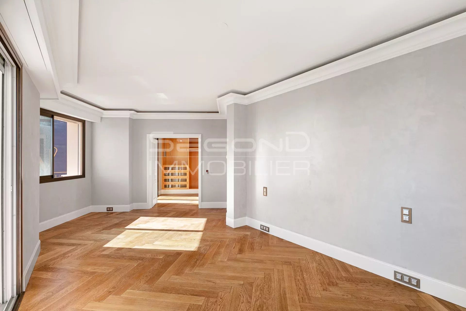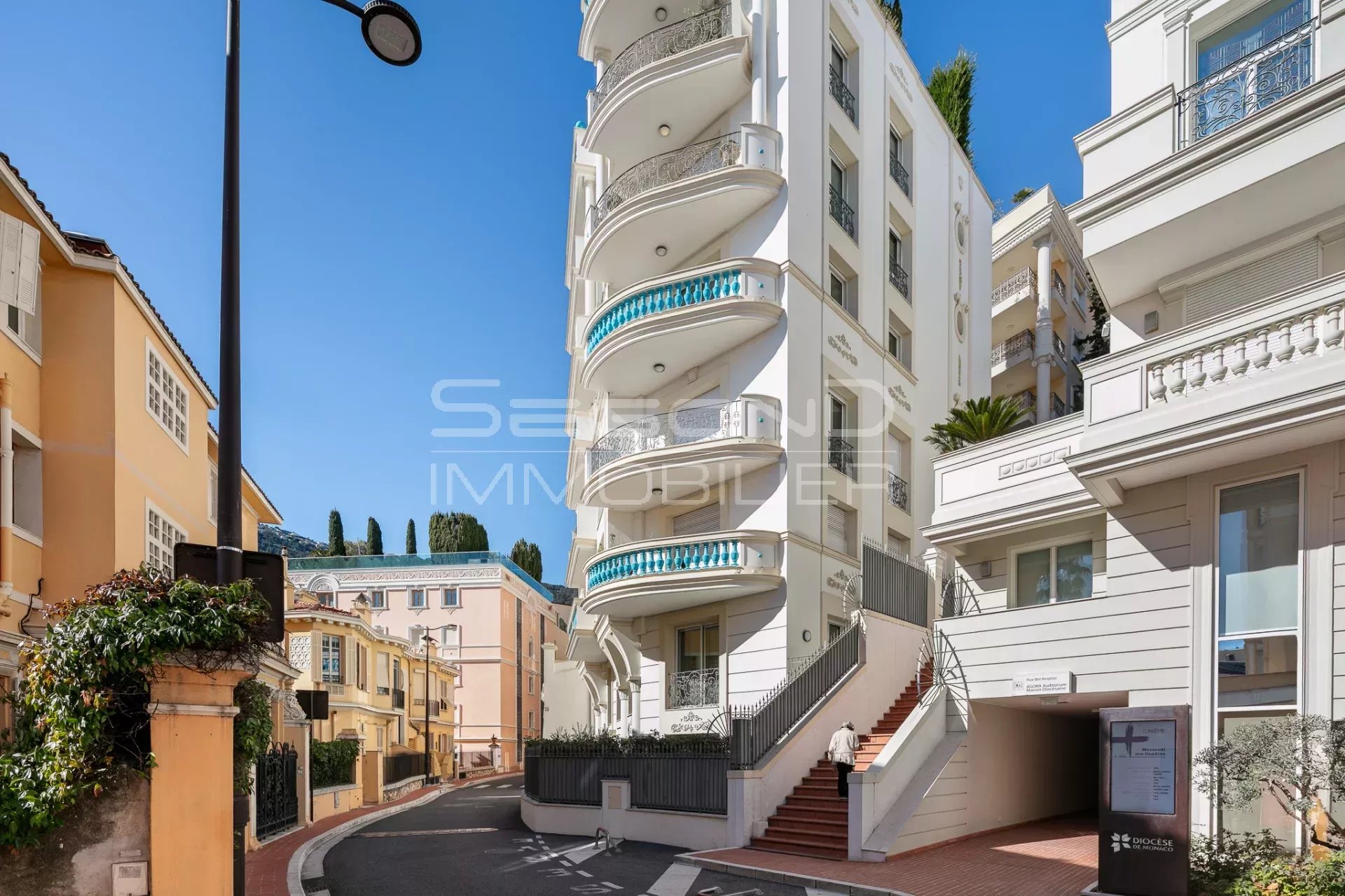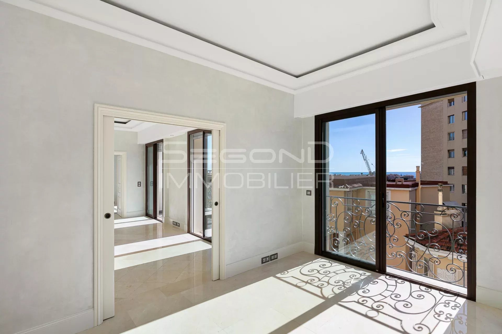 Completamente ristrutturato, l'appartamento è molto luminoso grazie alla sua tripla esposizione e alle numerose vetrate, che offrono una vista panoramica sul Principato, sulla sua rocca e sul Mediterraneo.