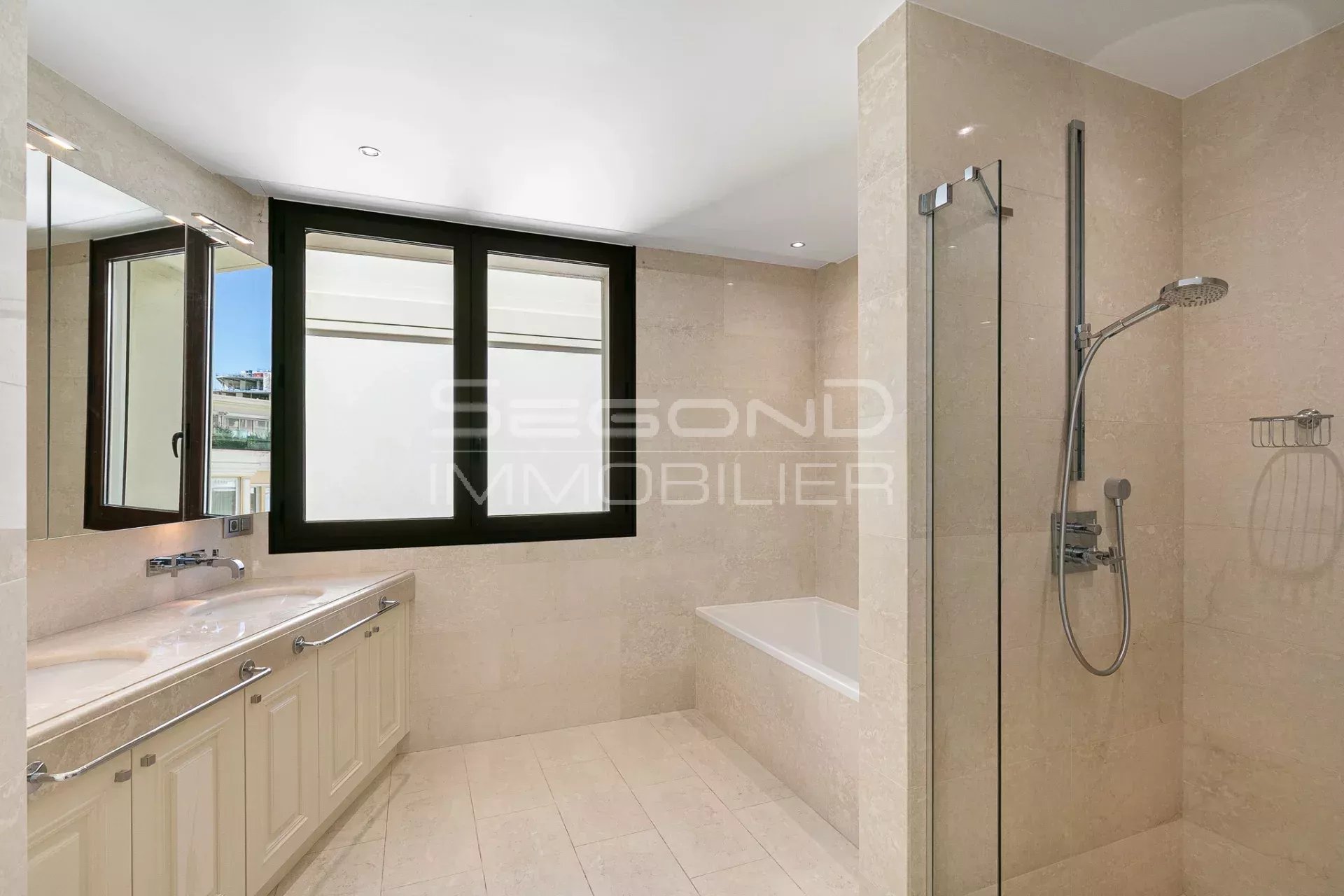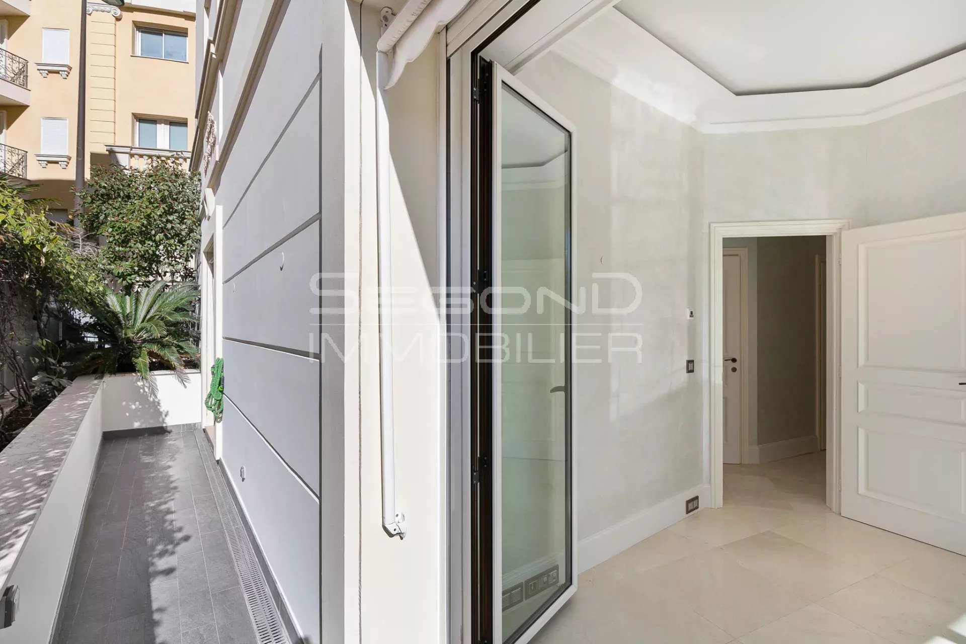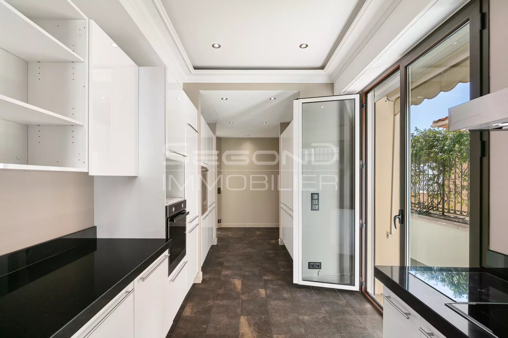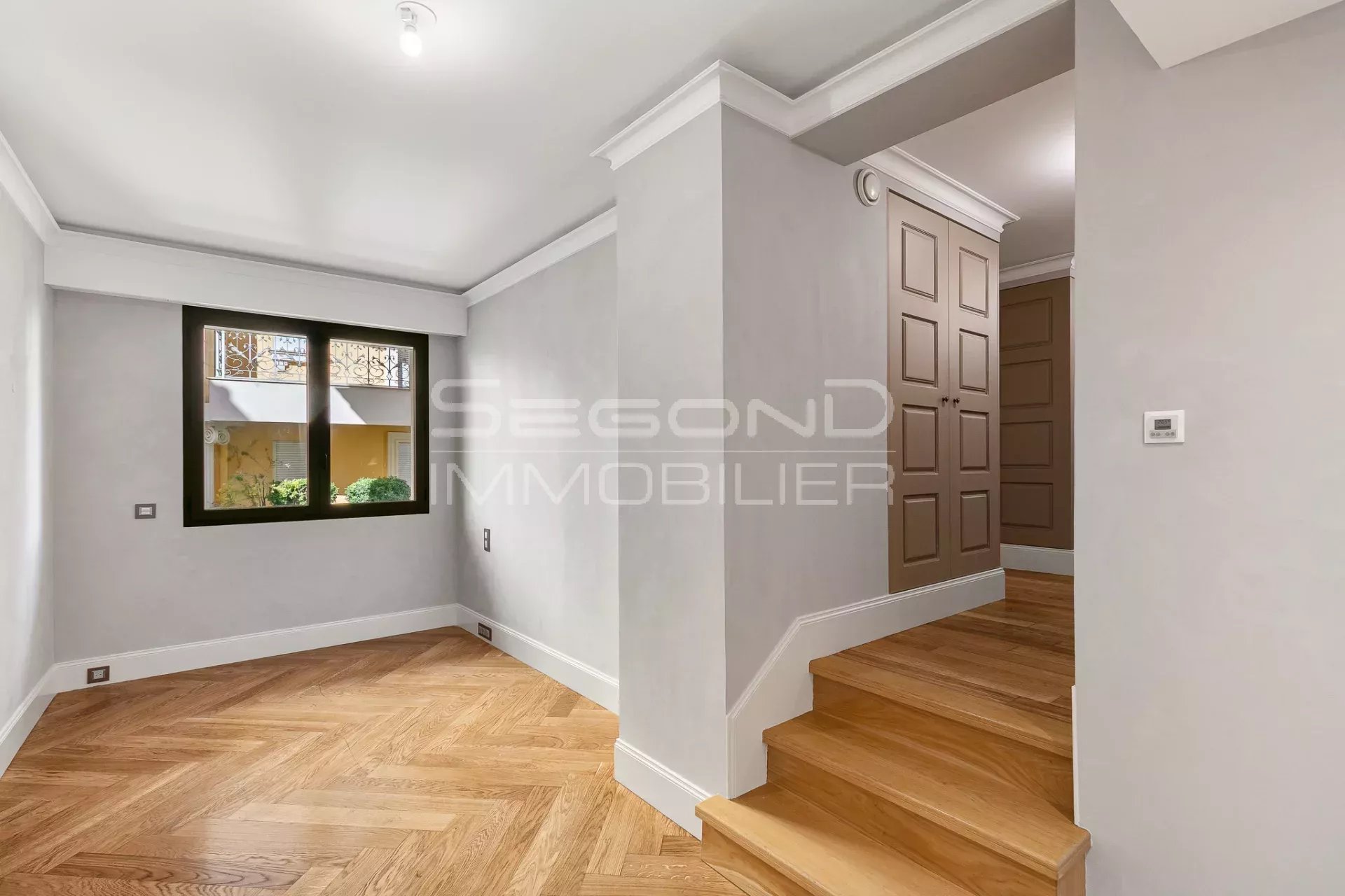 Completamente ristrutturato, l'appartamento è molto luminoso grazie alla sua tripla esposizione e alle numerose vetrate, che offrono una vista panoramica sul Principato, sulla sua rocca e sul Mediterraneo.