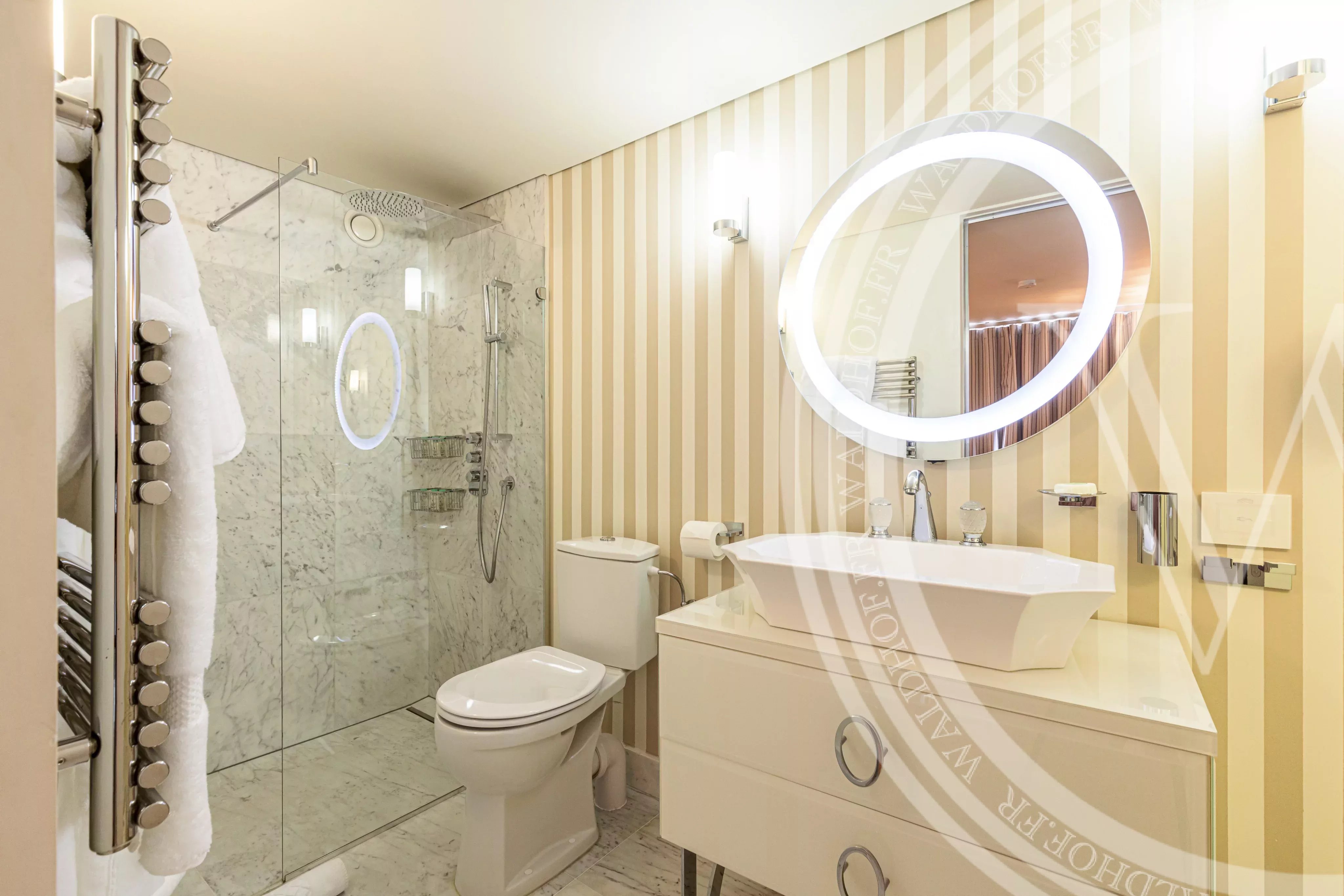 Gli ospiti possono inoltre usufruire dell'area SPA con bagno con doccia, jacuzzi, sauna, hammam e palestra completamente attrezzata, oltre a una piscina riscaldata con vista mare e la terrazza per le feste.