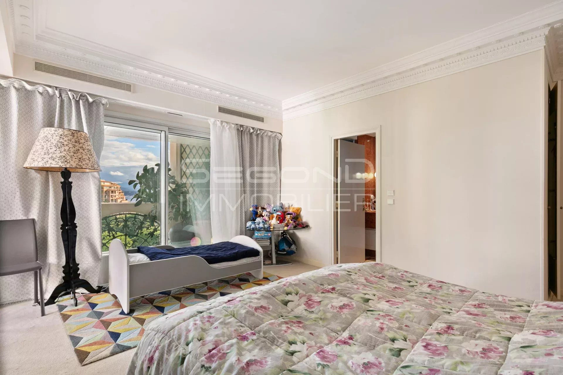 L'appartamento gode di una vista aperta sui giardini paesaggistici, sul Chapiteau de Fontvieille e panoramico sul Mar Mediterraneo, in un ambiente privilegiato.